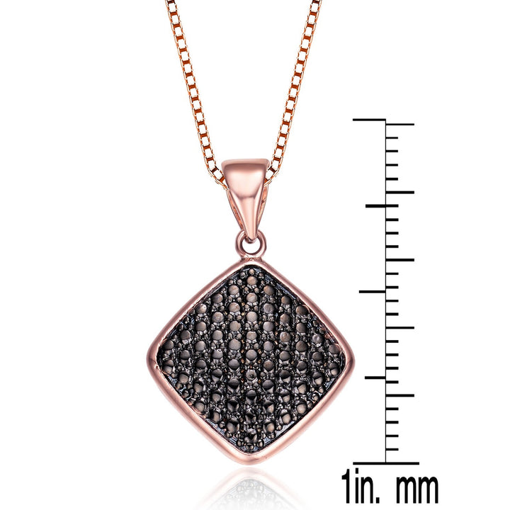 This pendant necklace is crafted from .925 sterling silver with black and rose plating. It features cubic zirconia stones and secures with a spring ring clasp.