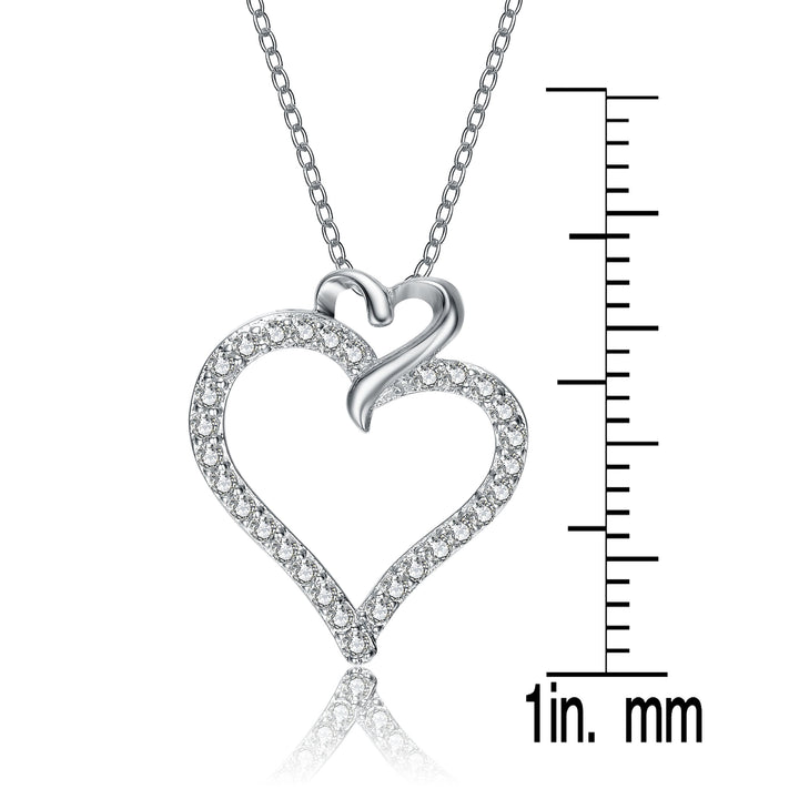 Sterling Silver White Gold Plated With Clear Cubic Zirconia Double Heart Pendant Necklace