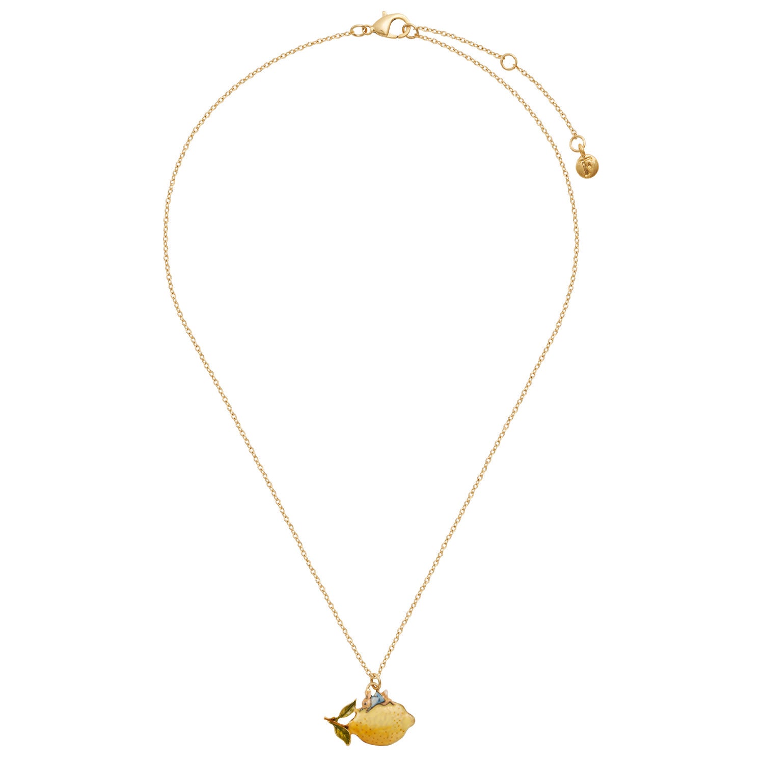 This Fable England X Peter Rabbit Lemon Necklace & Tom Kitten Earrings Set is a whimsical and charming addition to your jewelry collection. The set features a hand-painted enamel charm of Peter Rabbit climbing a lemon on a gold-plated chain and matching Tom Kitten huggie earrings. This delightful set captures the lighthearted spirit and nostalgic charm of Beatrix Potter's beloved characters in exquisite detail.