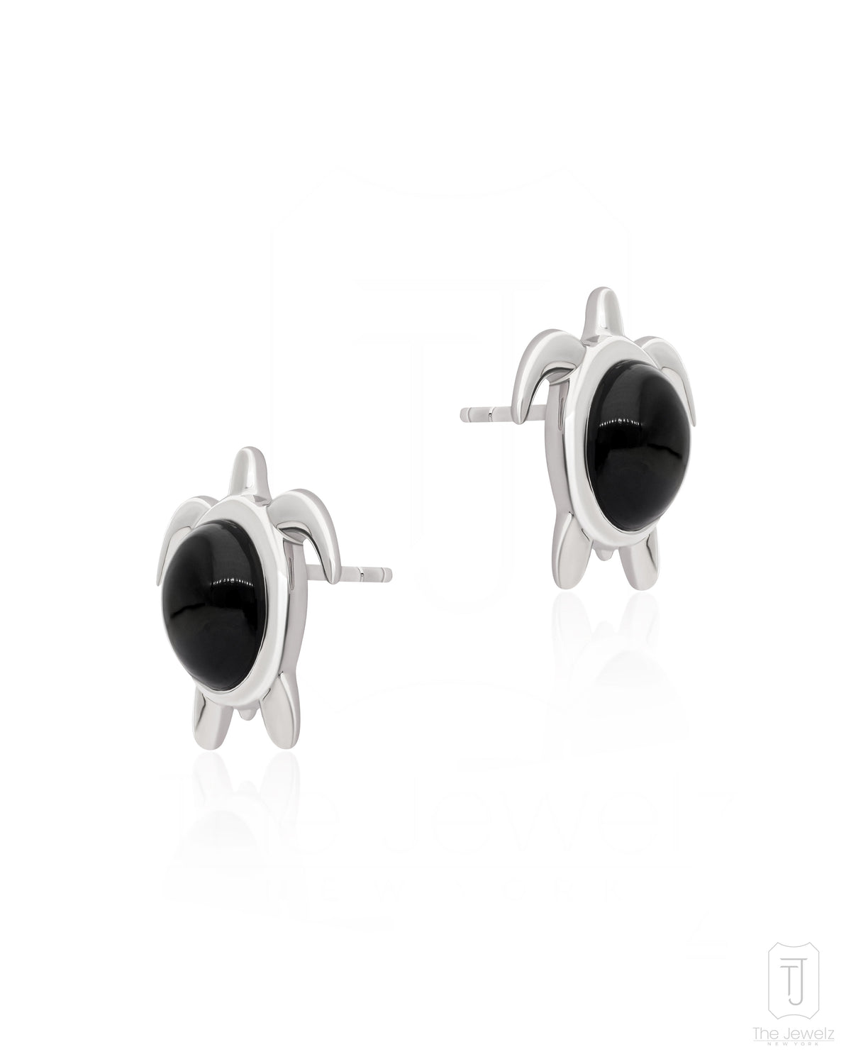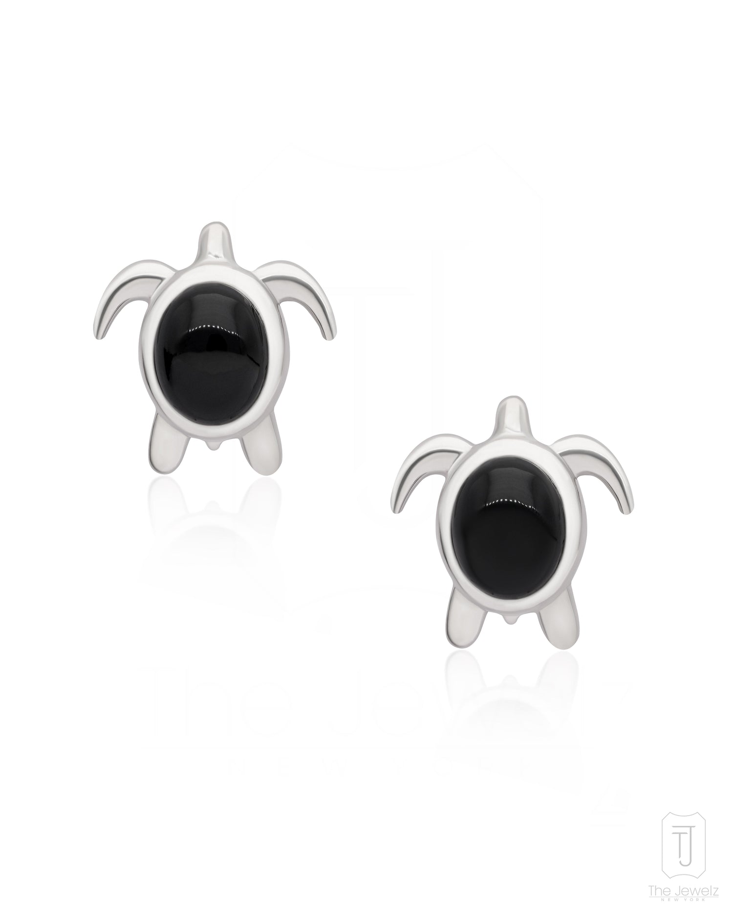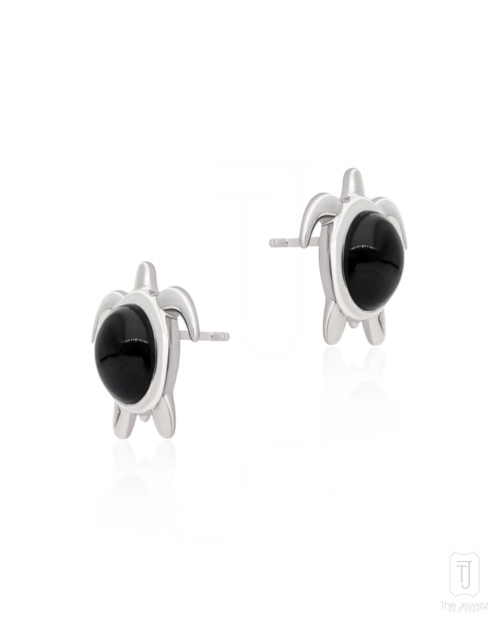 Twilight Turtles' Silver Stud Earrings - Black Onyx