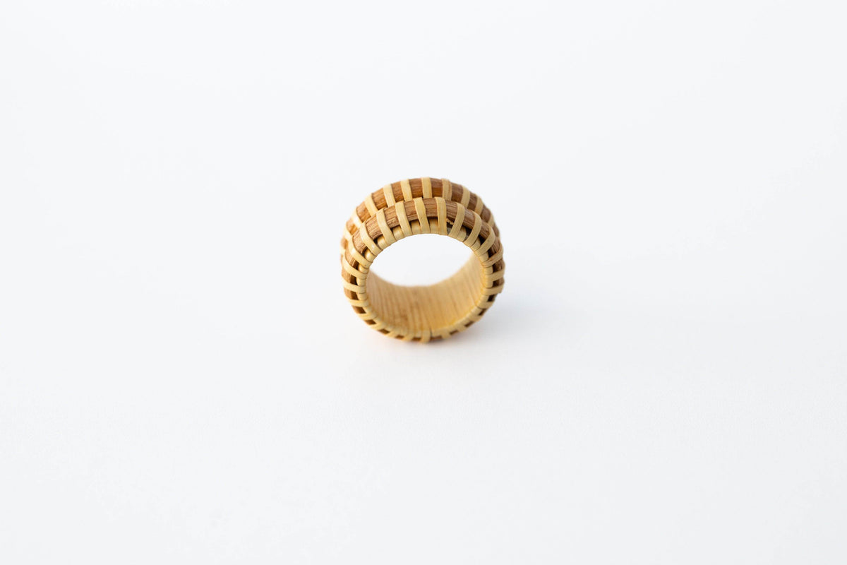 This ring is crafted from an unspecified metal and features a woven design inspired by a Nantucket basket. The band runs a little small, so it is recommended to order a size up.