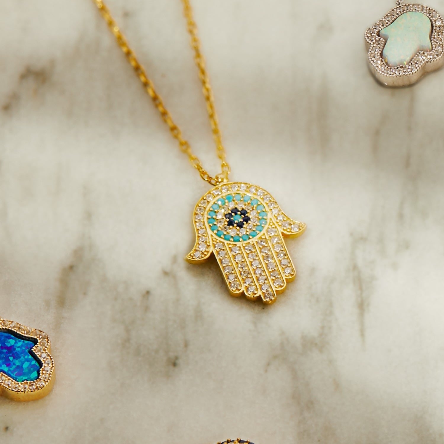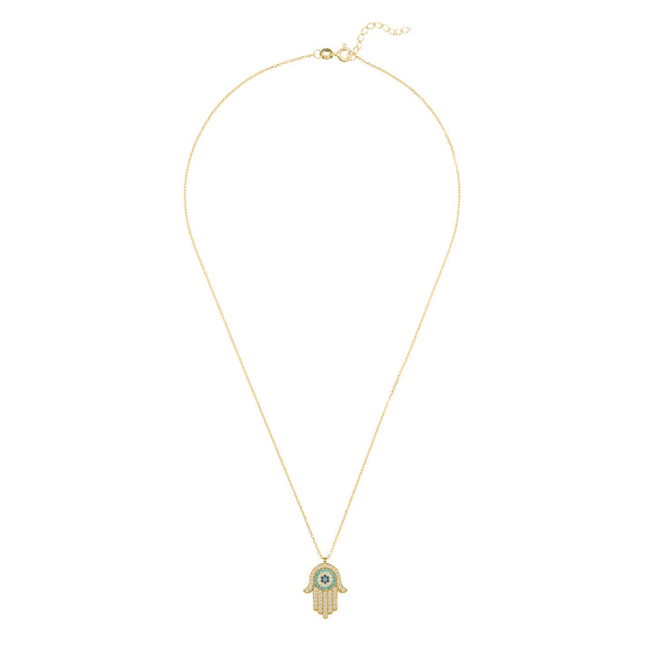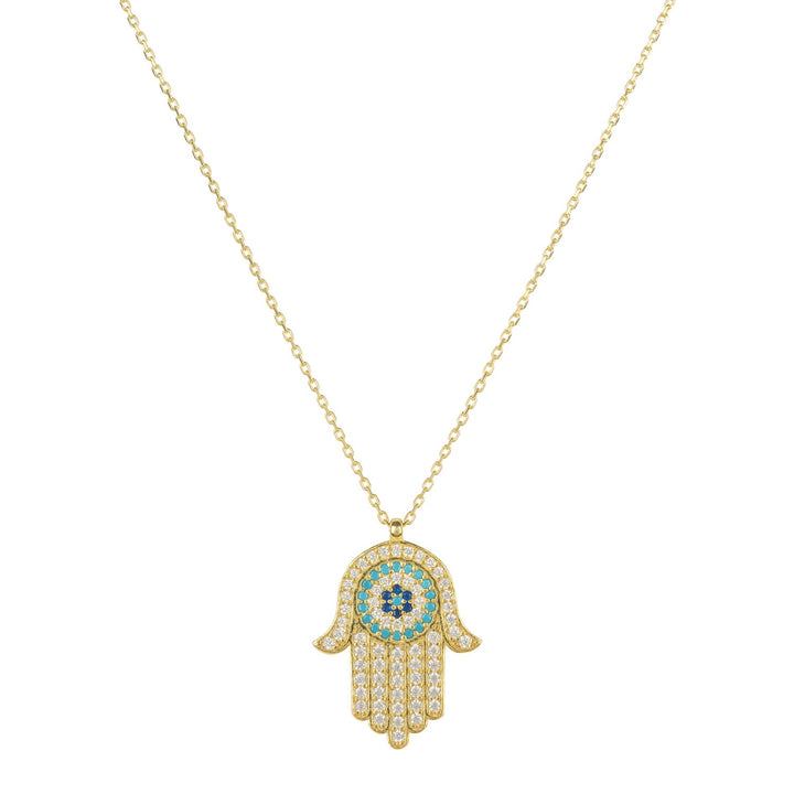 Hamsa Hand With Evil Eye Pendant Necklace Gold