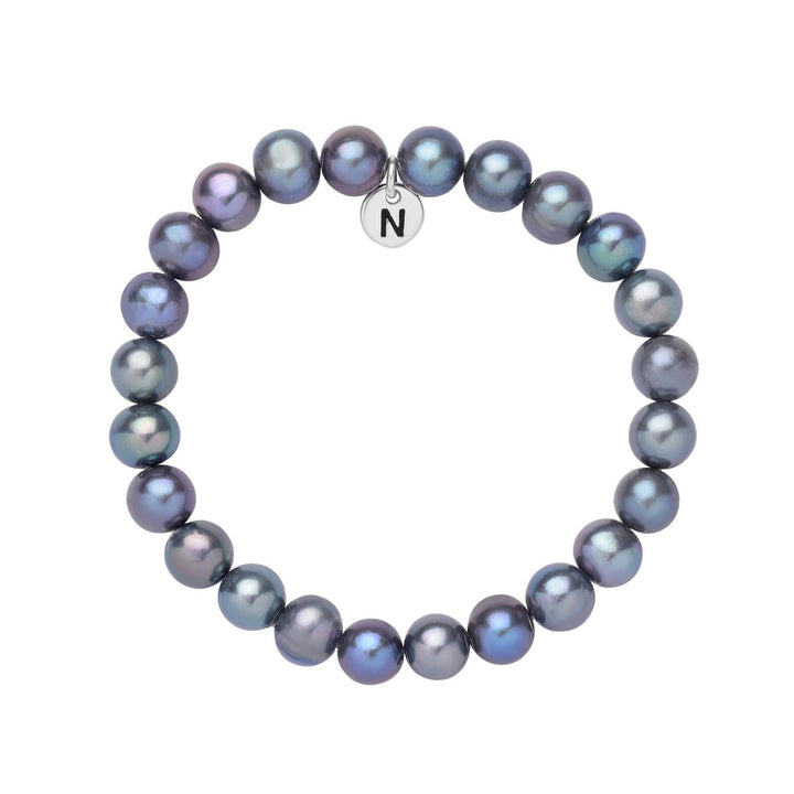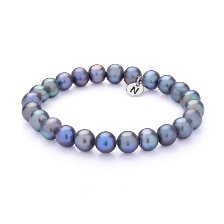 Peacock freshwater pearls on stretch cord. Finished with signature Nellou tag. Available in White, Silver & Peacock.