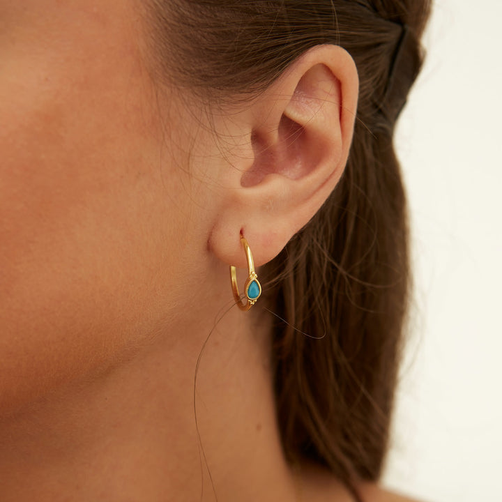 Drop Gold Solitaire Earring Sterling Silver - Turquoise - Gold