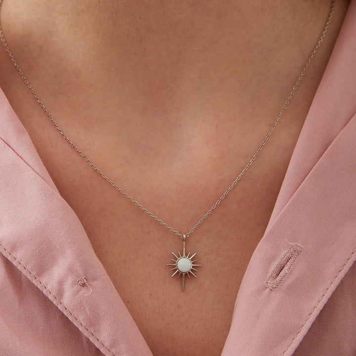 White Opal Northernstar Sterling Silver Pendant Necklace - Silver