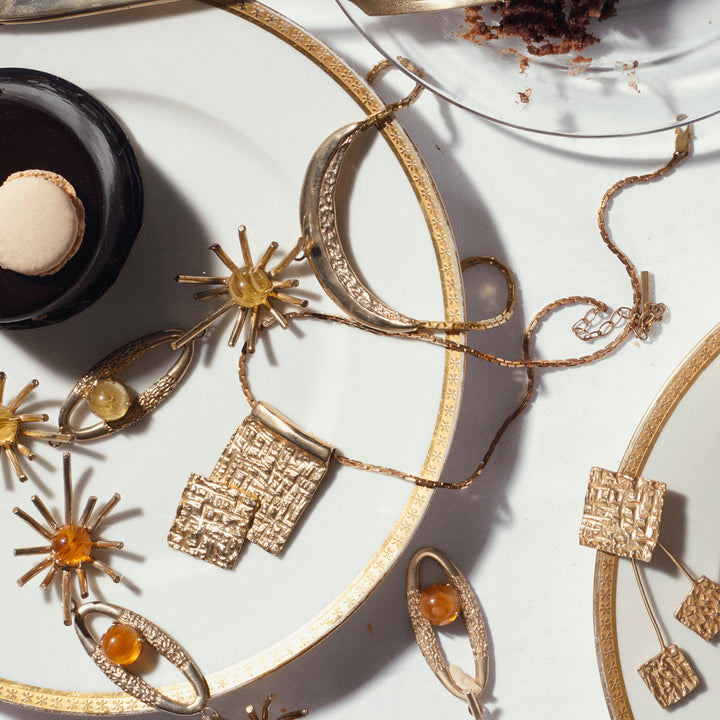 Castlecliff is a historic New York-based jewelry brand founded in 1918, known for its bold, sculptural designs featuring vibrant rhinestones and intricate metalwork. Revived by designer Stephanie Schwallie, the brand now focuses on sustainable luxury, with all pieces handcrafted in NYC using upcycled materials and recycled metals. Castlecliff’s modern collections blend mid-century aesthetics with contemporary craftsmanship, staying true to its legacy while embracing sustainability.