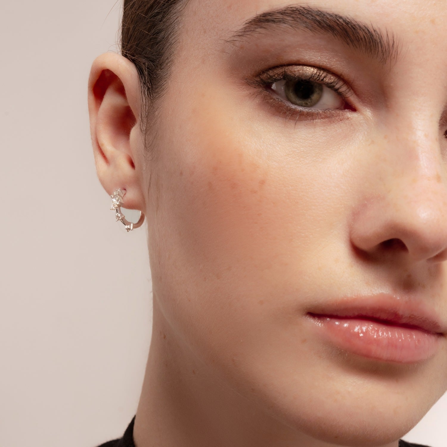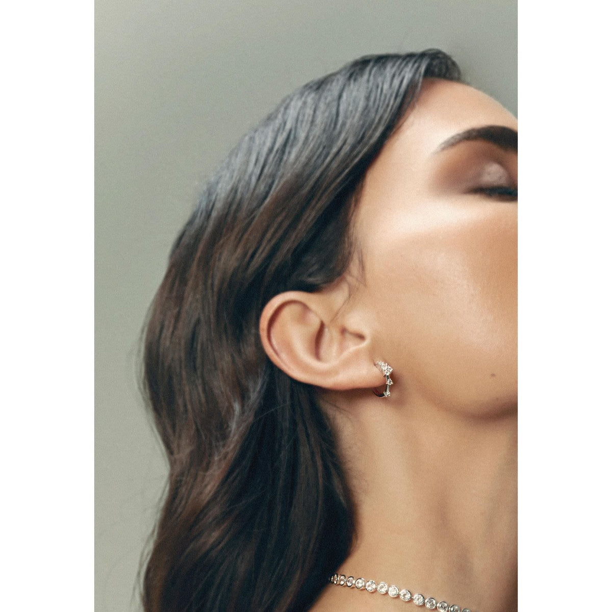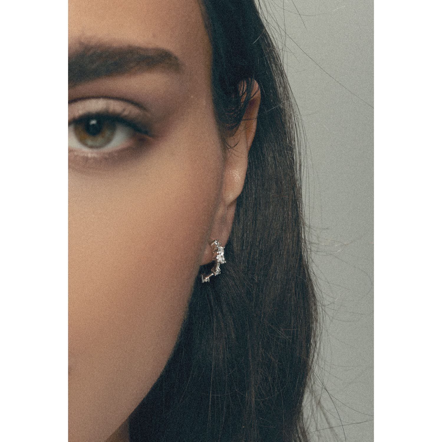 These hoop earrings are silver-plated, decorated with white zircons, and are hypoallergenic and nickel-free.