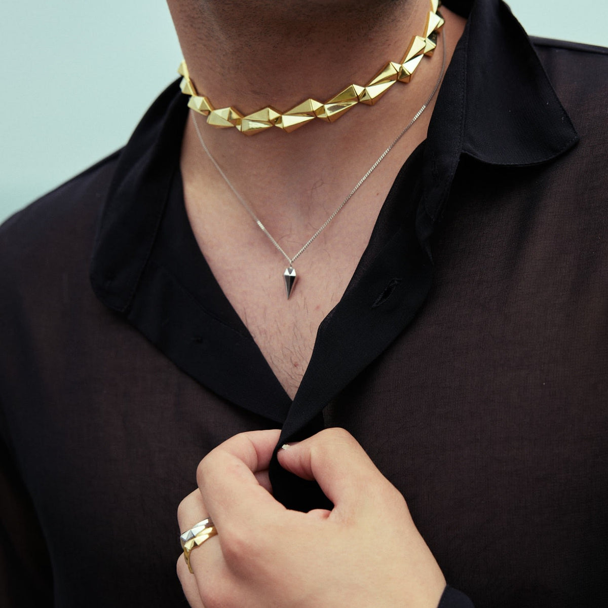 Made from 925 sterling silver with 22k rhodium and micron gold plating. Includes sterling silver chain. Nickel-free and hypoallergenic. Unisex design.