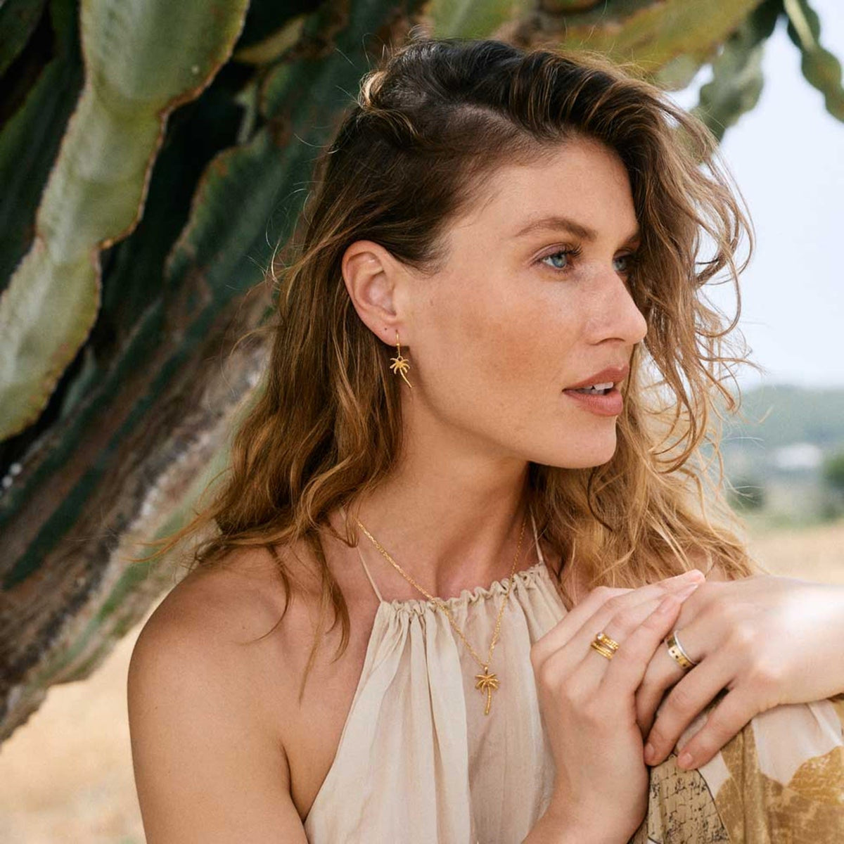 Oasis Palm Gold Drop Earrings