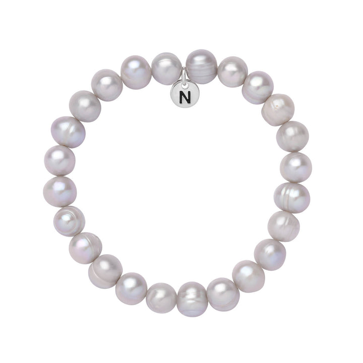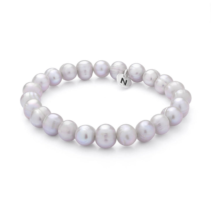 Silver freshwater pearls on stretch cord. Finished with signature Nellou tag. Available in White, Silver & Peacock.