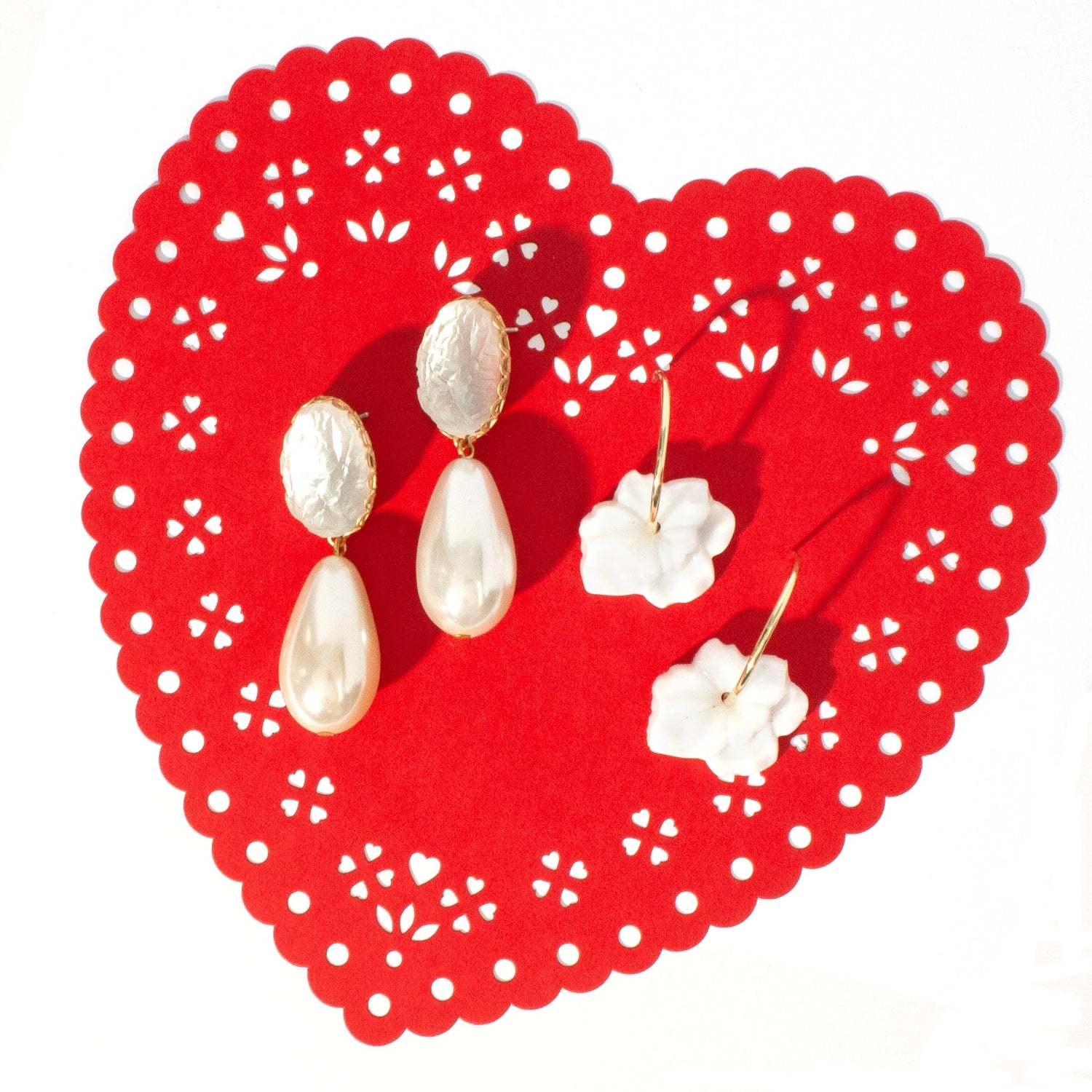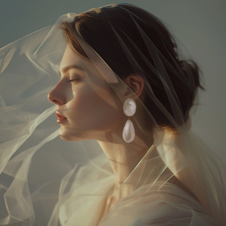 These Chrysalis Earrings by Castlecliff transform vintage treasures into modern heirlooms. Featuring textured foiled glass and luminous pearls from reclaimed materials, they exude bridal elegance and timeless sophistication. Each piece carries the legacy of mid-century craftsmanship, revived for today.