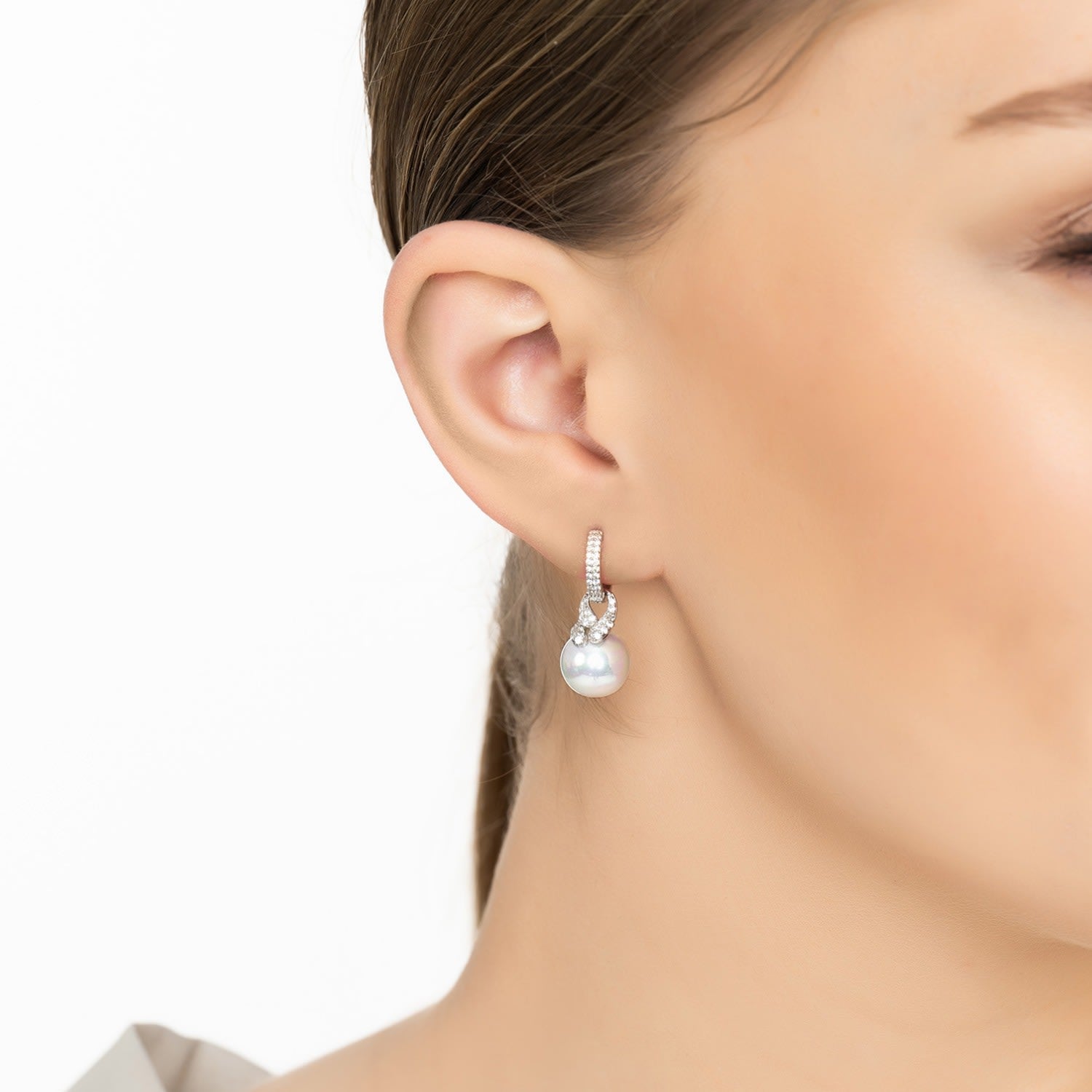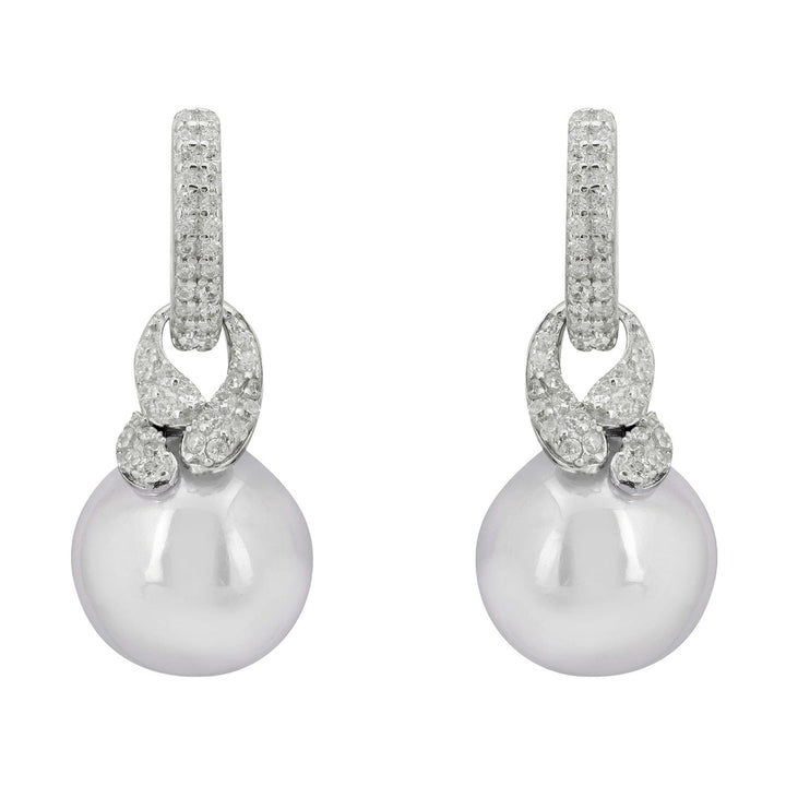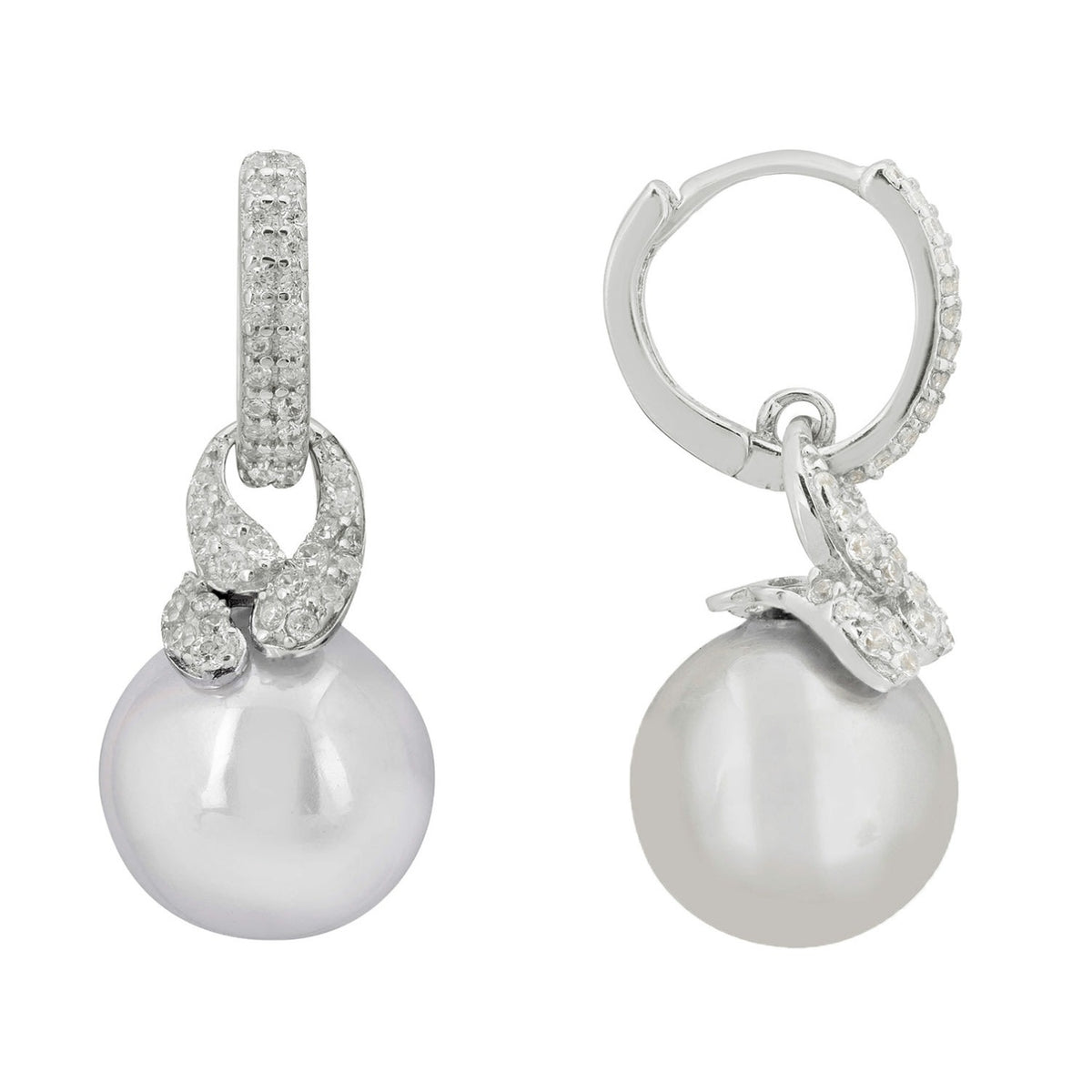 These earrings are handcrafted from 925 sterling silver and feature cubic zirconia and a grey pearl.