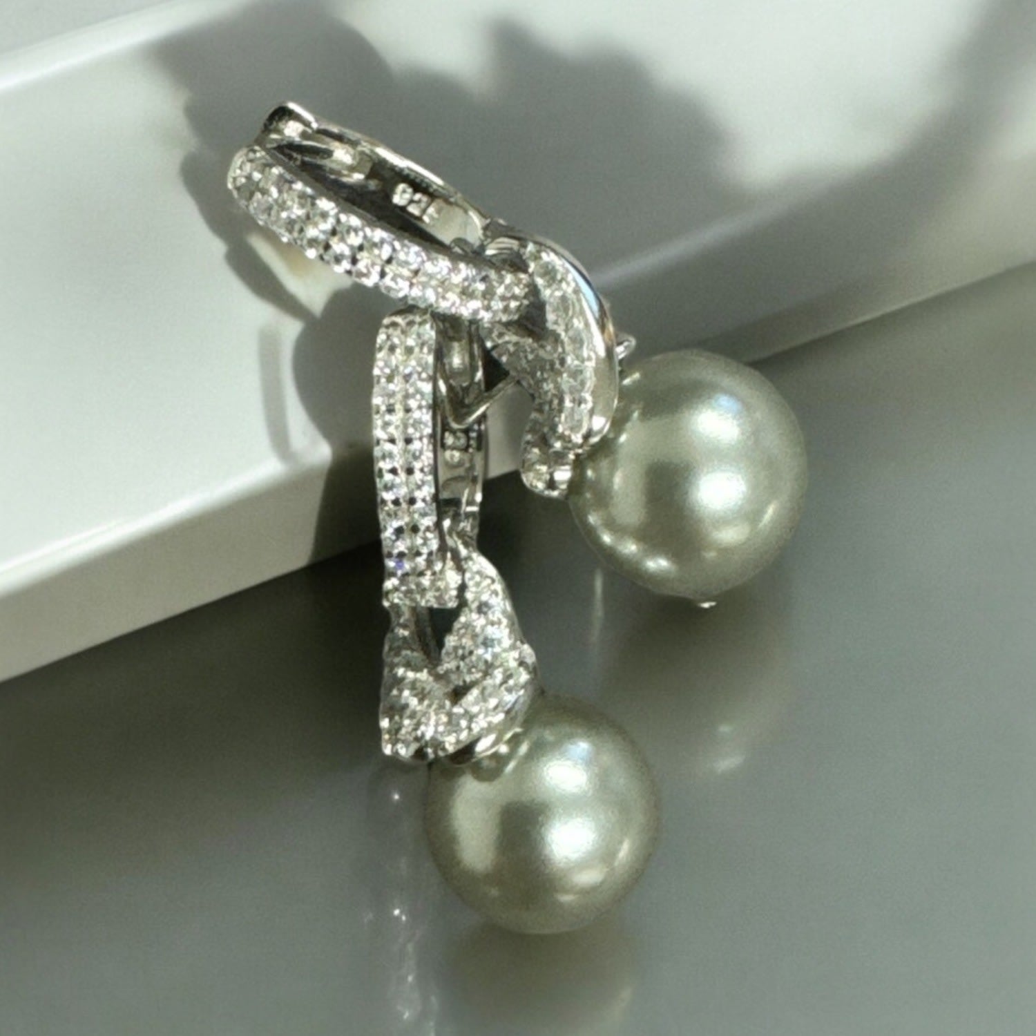 Tie The Knot Drop Grey Pearl Earrings Silver