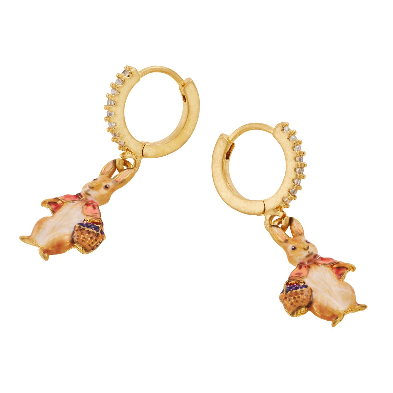 This Cotton-Tail Earrings & Brooch Set by Fable England X Peter Rabbit captures childhood whimsy in fine detail. Hand-painted enamel brings the storybook character to life, while crystal-adorned hoops and a sweet brooch make this a collectible keepsake.