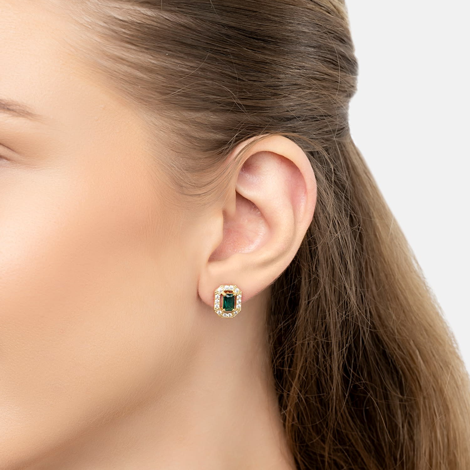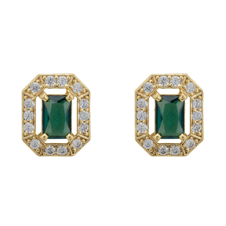 These Whistledown Gemstone Stud Earrings Emerald Gold by Latelita embody refined elegance with a quiet strength. Featuring rectangular-cut emeralds encased in a sparkling halo of cubic zirconia, they radiate sophistication that transitions seamlessly from day to evening. More than adornment, they are a symbol of timeless taste and personal grace.