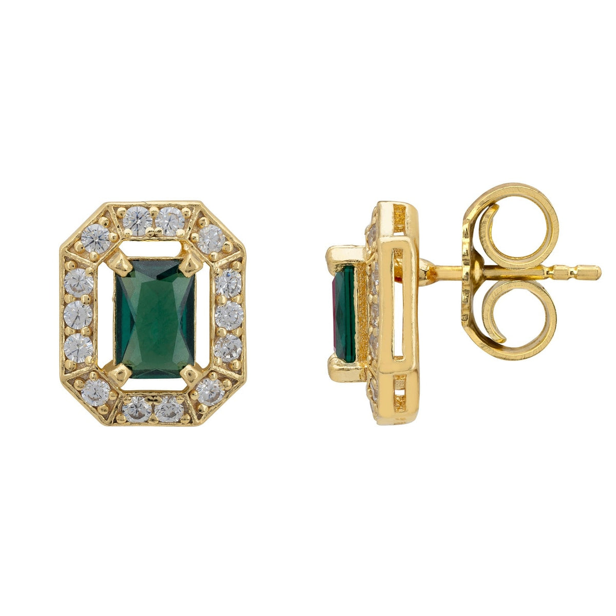 Whistledown Gemstone Stud Earrings Emerald Gold