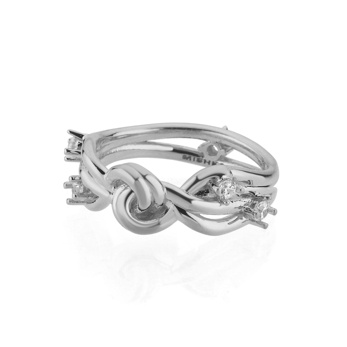 Crafted in 925 sterling silver plated with rhodium. Embellished with asymmetrically set white stones. Unisex design.