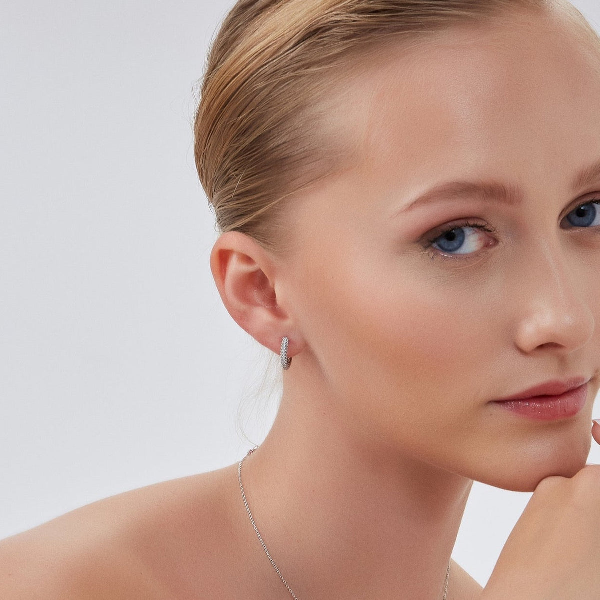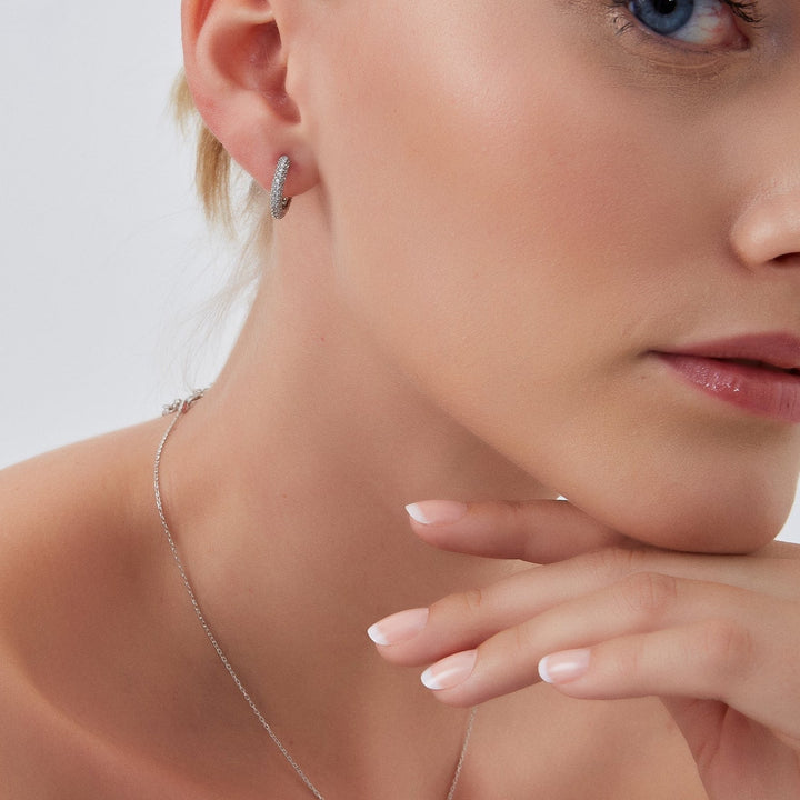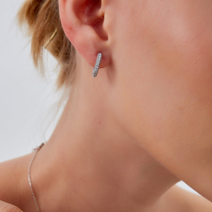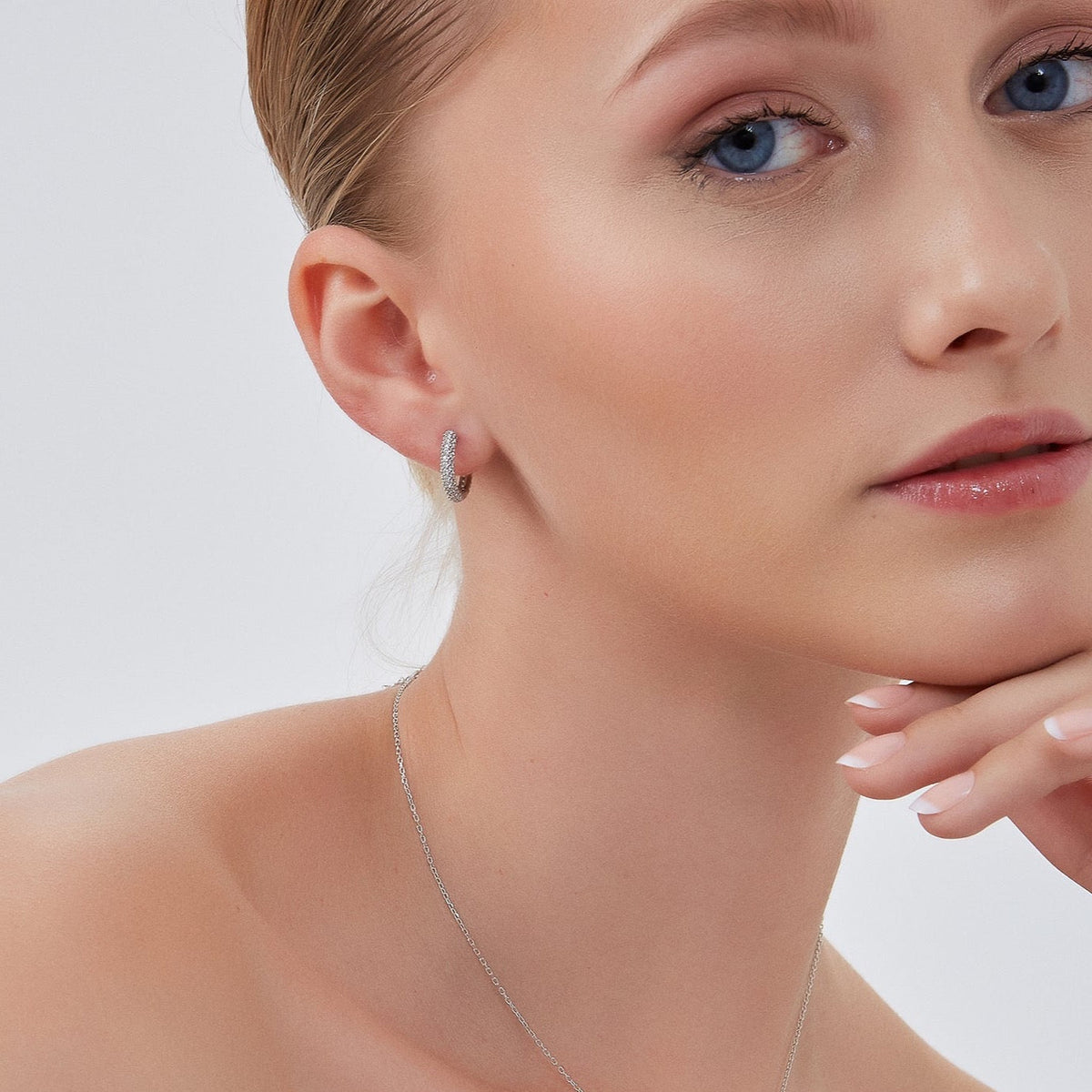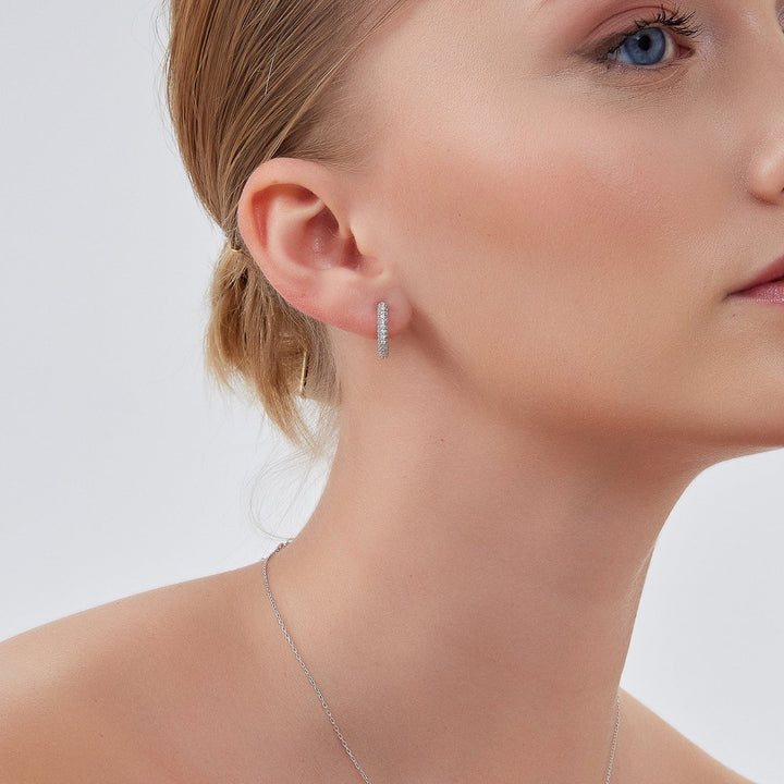 These Pave Sterling Silver Hoop Earrings by Spero London are a stylish and seriously chic accessory. The pave details encrusting the rectangular silver frame add a "bling-tastic twist" that will make you stand out. These hoops are a perfect choice for an elegant and confident look.