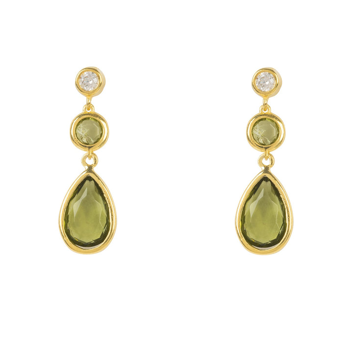 These drop earrings are made from 925 sterling silver and are dipped in 22ct gold. They feature a Peridot and cubic zirconia stones.