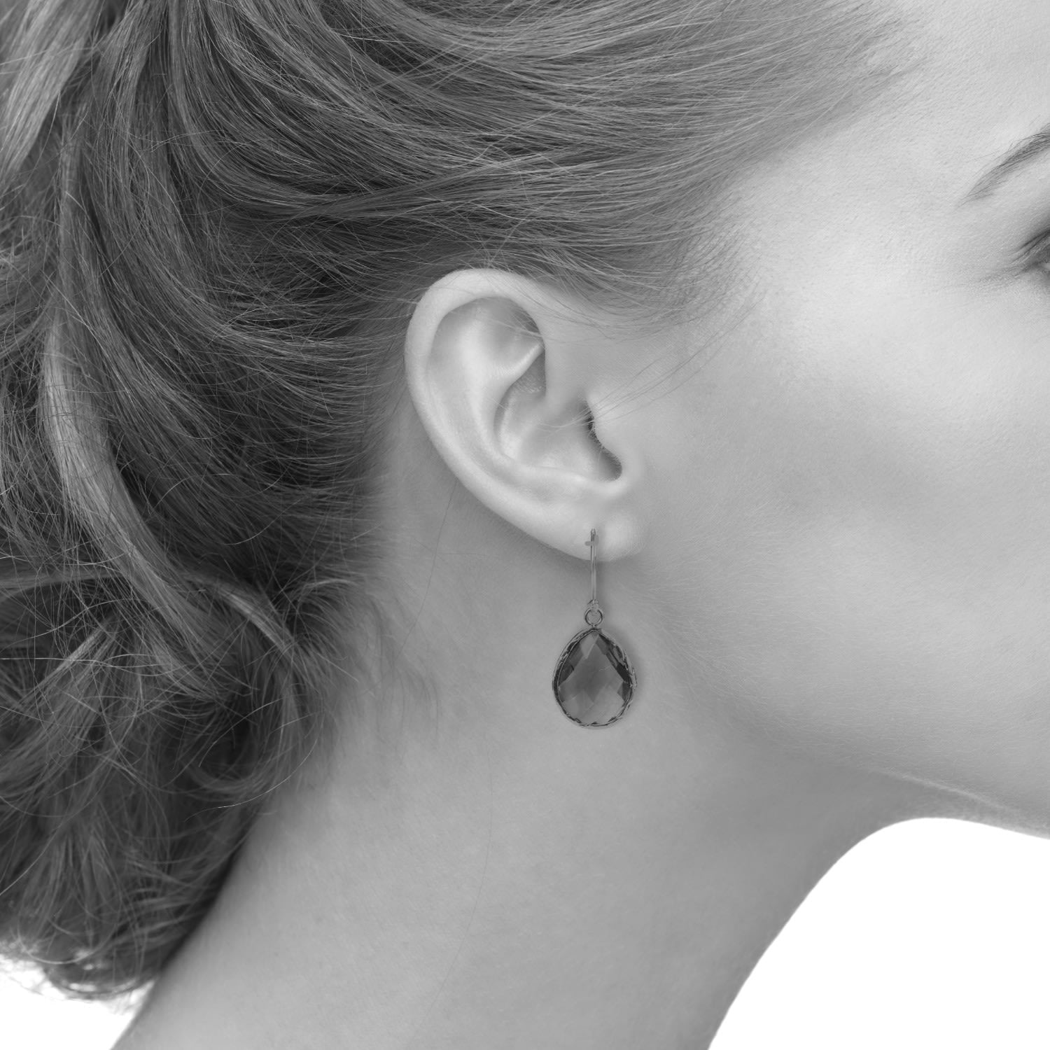 These petite earrings are crafted from 18ct rose gold-plated sterling silver and feature multi-faceted rose quartz crystals.