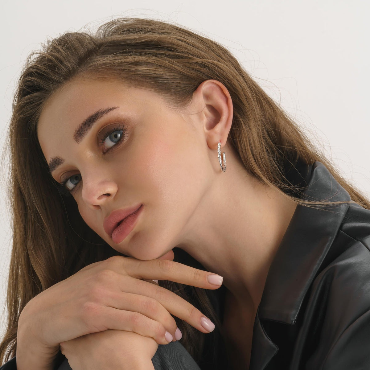 These hoop earrings are made of solid sterling silver coated in genuine 14k gold plating. They are approximately 26.5mm in diameter and have a butterfly closure.