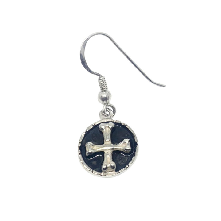 These dangle earrings are made of sterling silver 925 with black enamel. They have a drop length of 3.5cm and are created using the lost wax casting method.