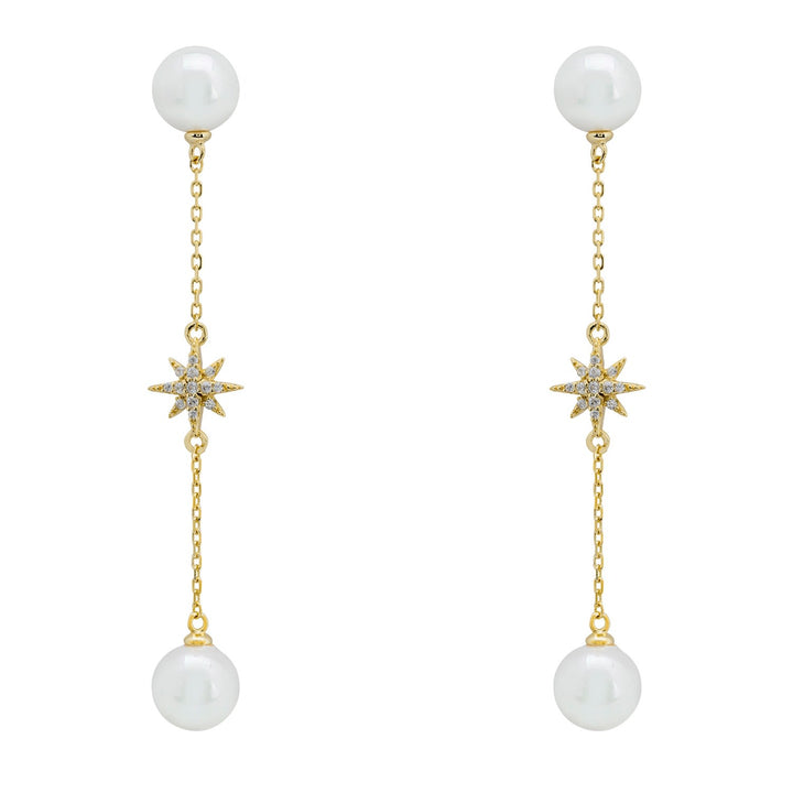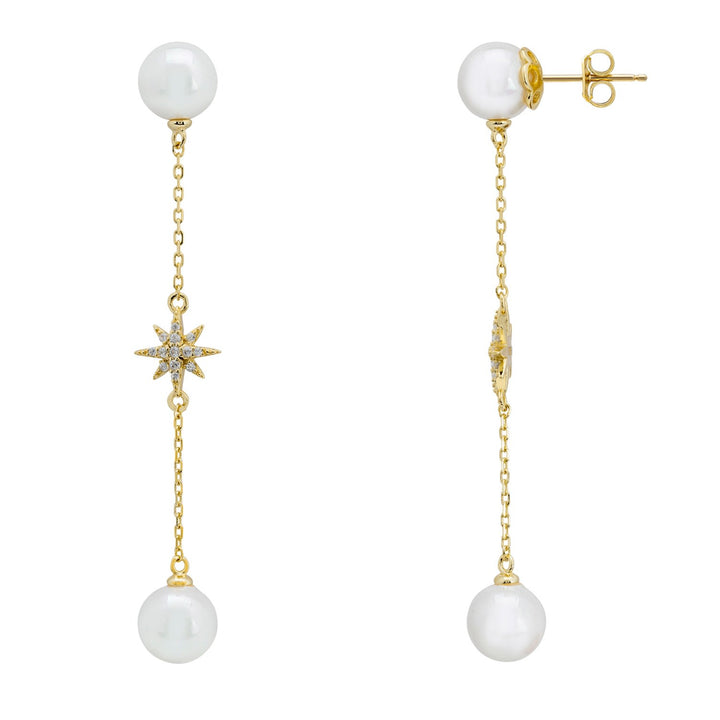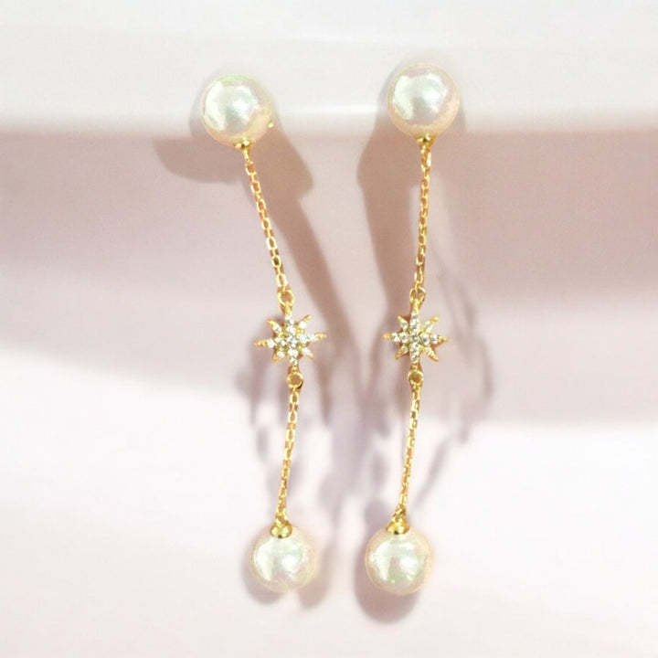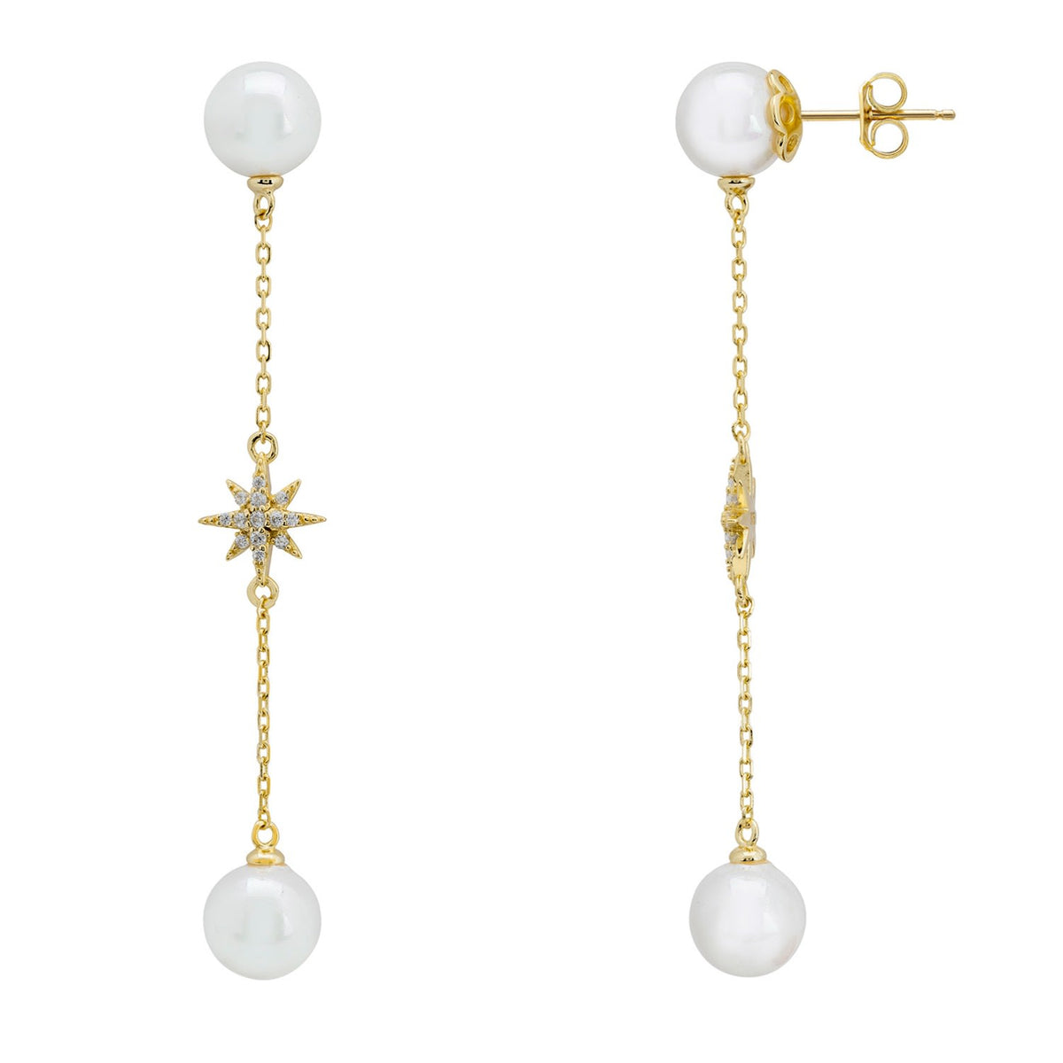 These Falling Star Pearl Drop Earrings by Latelita are a celestial and ethereal accessory that combines the timeless beauty of pearls with a touch of starlit magic. The two Majorica pearls are beautifully arranged, with a sparkling star set with zircons delicately suspended from a fine chain. This design symbolizes hope and guidance, making these earrings a meaningful and elegant addition to any look. They are perfect for special occasions or for adding a touch of celestial beauty to your style.