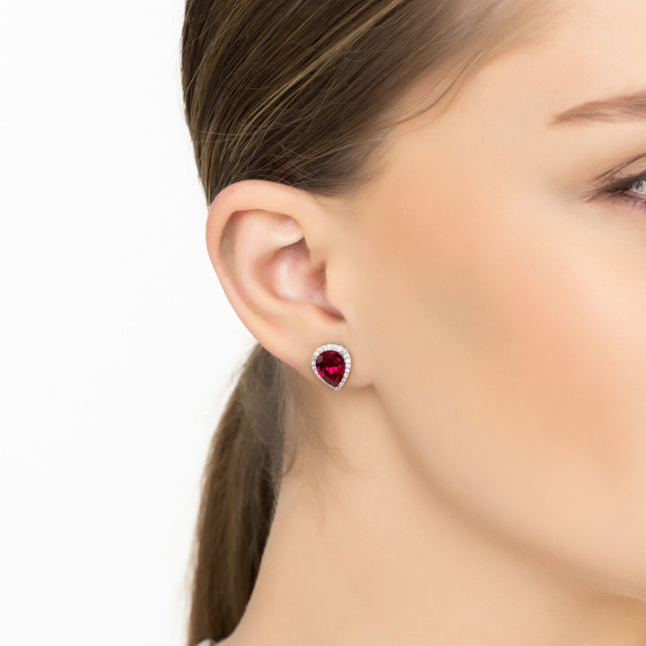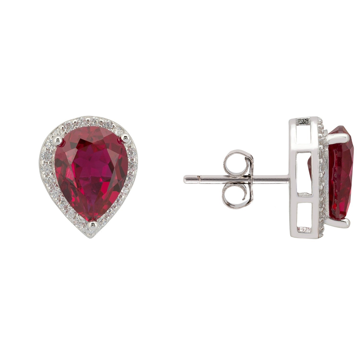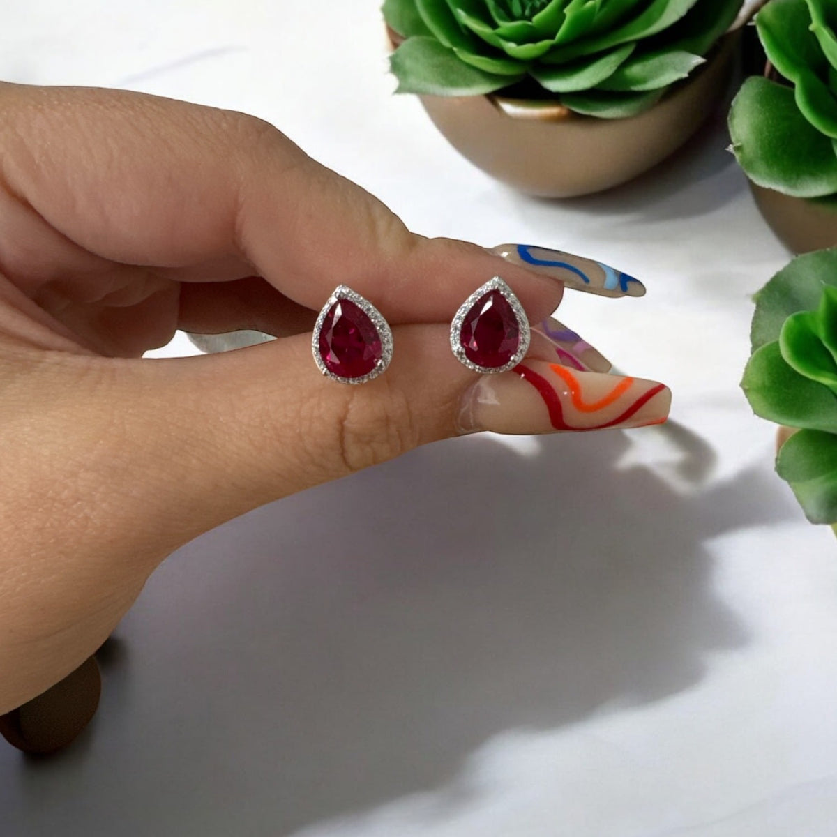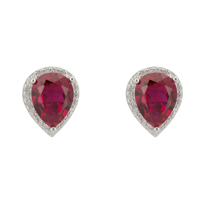 Theodora Ruby Teardrop Gemstone Stud Earrings Silver