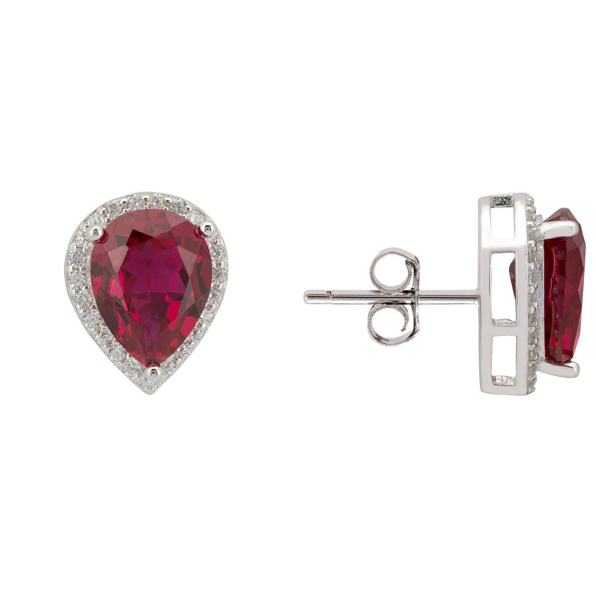 These stud earrings are handcrafted from 925 sterling silver with a rhodium dip. They feature a lab-created ruby and are set with cubic zirconia.