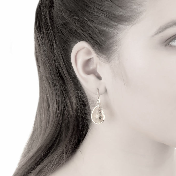 These petite earrings are crafted from 18ct gold-plated sterling silver and feature multi-faceted amethyst hydro crystals.