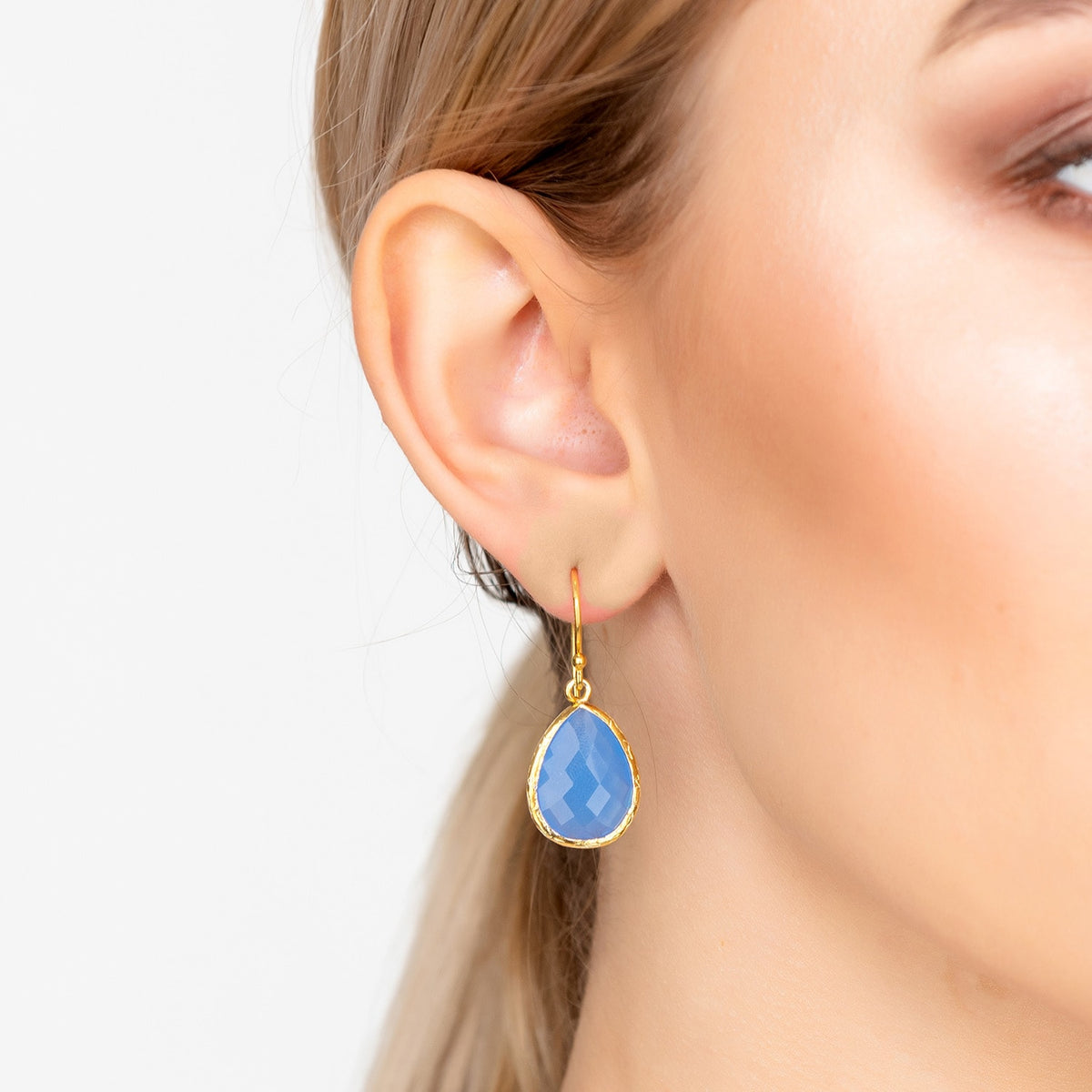Petite Drop Earrings Dark Blue Chalcedony Gold