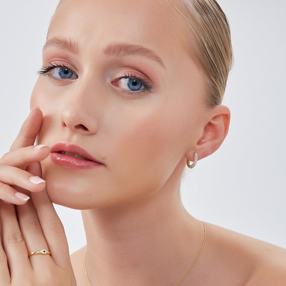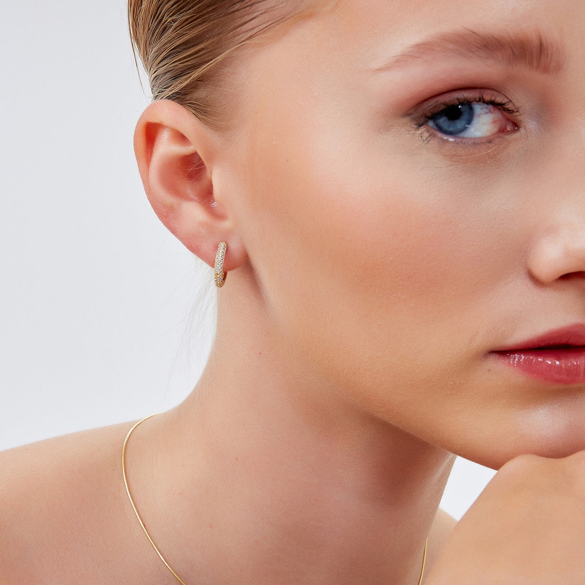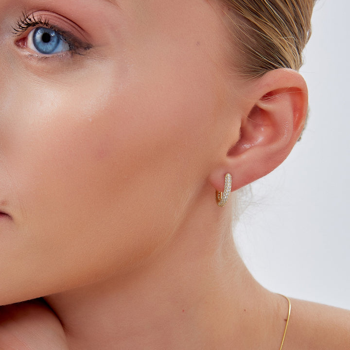 These hoops are crafted from sterling silver with a gold finish and pave details.