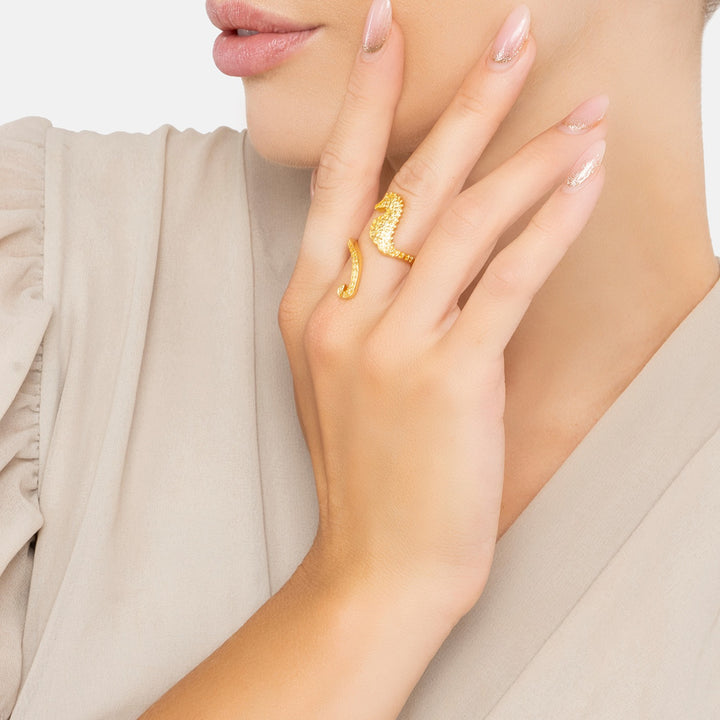 Seahorse Wrap Around Adjustable Ring Gold