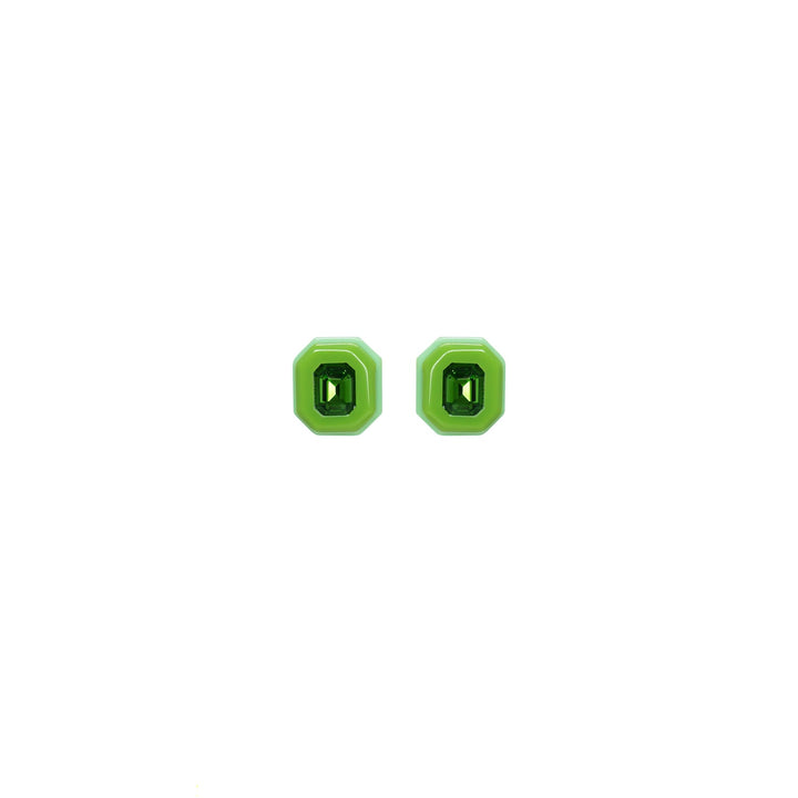 Acrylic Handmade Earring Short Stone Octagonal - Green