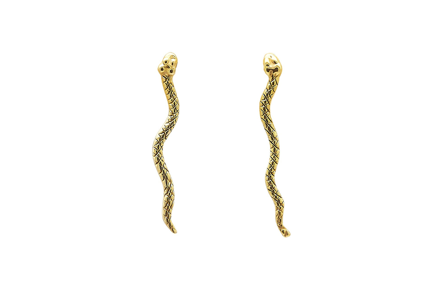 These Earrings Mini Serpentine Rectos by Sophie Simone Designs are a striking and elegant accessory with a minimalist yet artistic feel. Their serpentine design, crafted in either gold-plated bronze or sterling silver, gives them a fluid, modern look. They embody a sense of quiet confidence and effortless sophistication, perfect for those who appreciate unique and handcrafted pieces. These earrings are a beautiful statement of personal style.