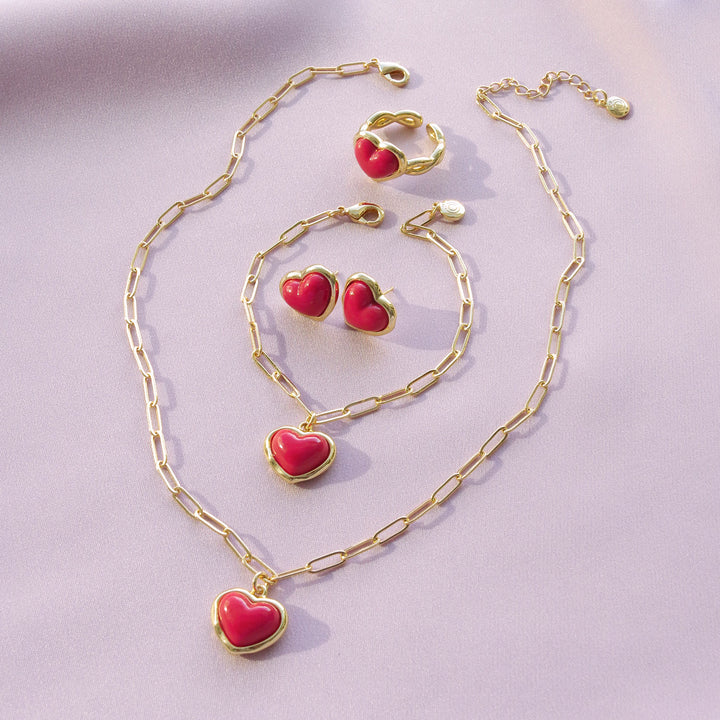 This Porcelain Red Heart Charm Bracelet by Poporcelain is a standout accessory that symbolizes love and romance. The heart-shaped charm is meticulously formed from high-quality porcelain with a vibrant red glaze, adding a pop of color and warmth that complements any outfit. The bracelet has an adjustable length, and while the gold plating will fade over time, the porcelain part is durable and long-lasting.