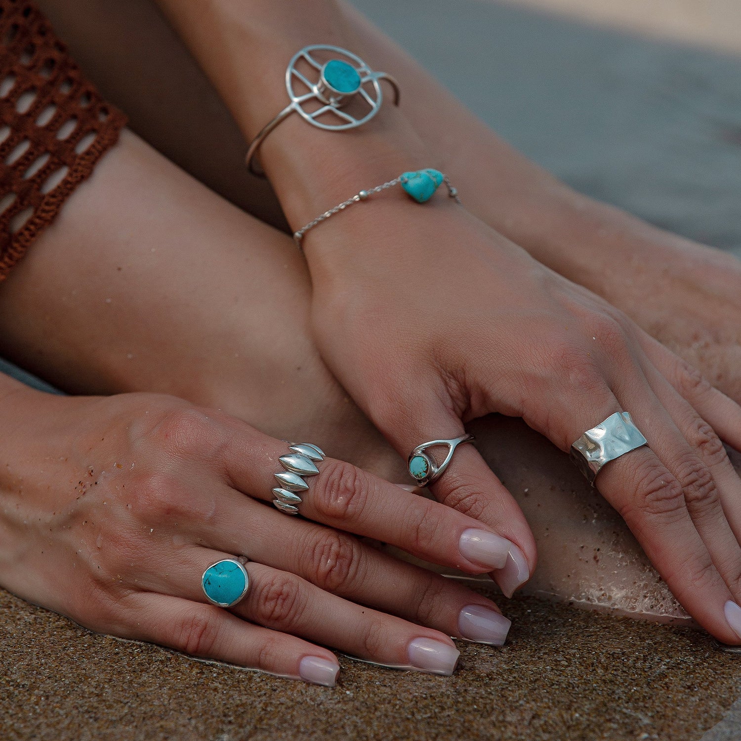 This Molten Silver Fluid Wave Ring by Mejoma is a unique piece of wearable art that captures the elegance of movement. Its organic, wave-like design evokes a sense of fluid energy and graceful flow, creating a truly one-of-a-kind look. This ring is perfect for expressing your individuality and adding a touch of artistic charm to your style.