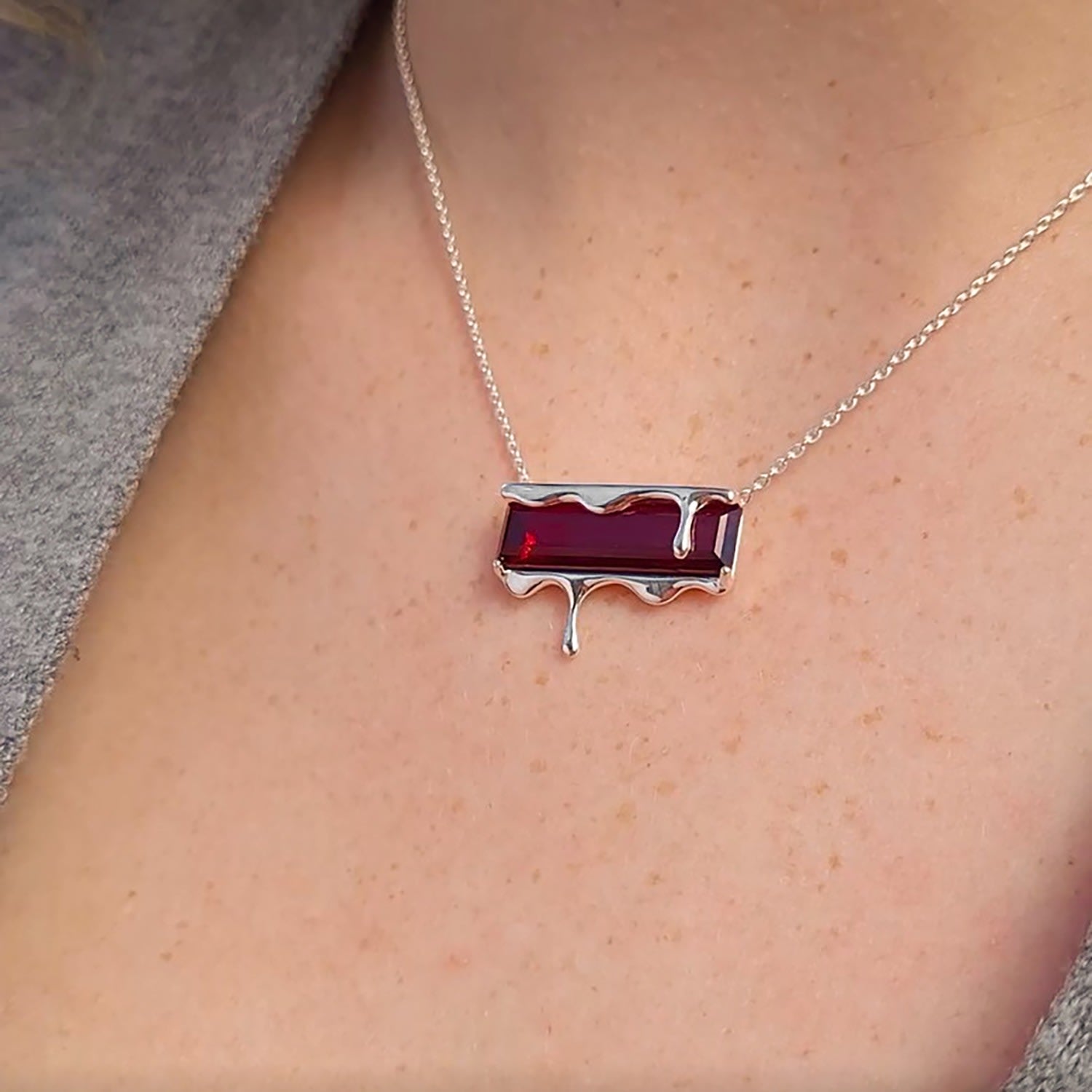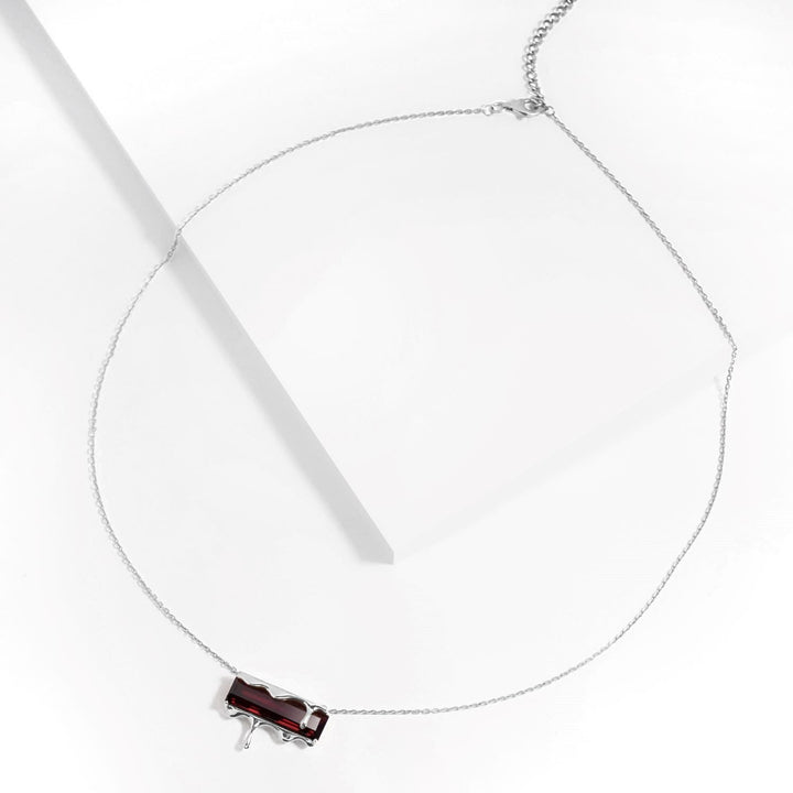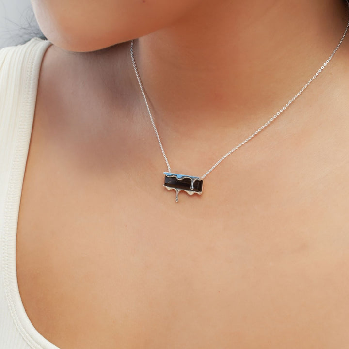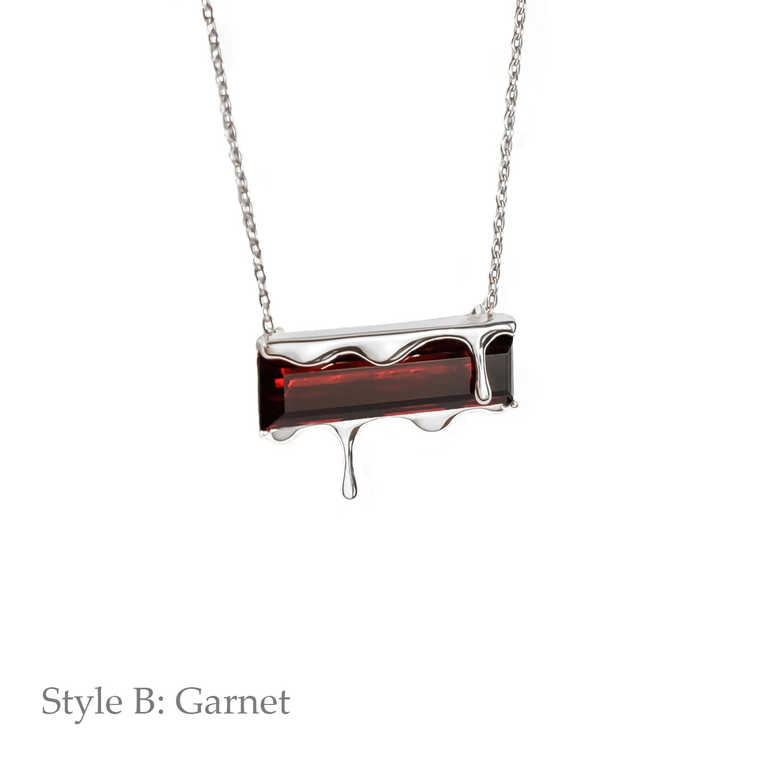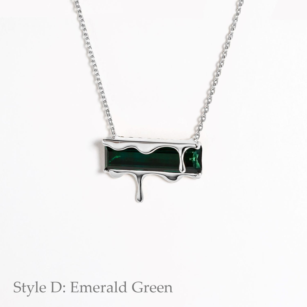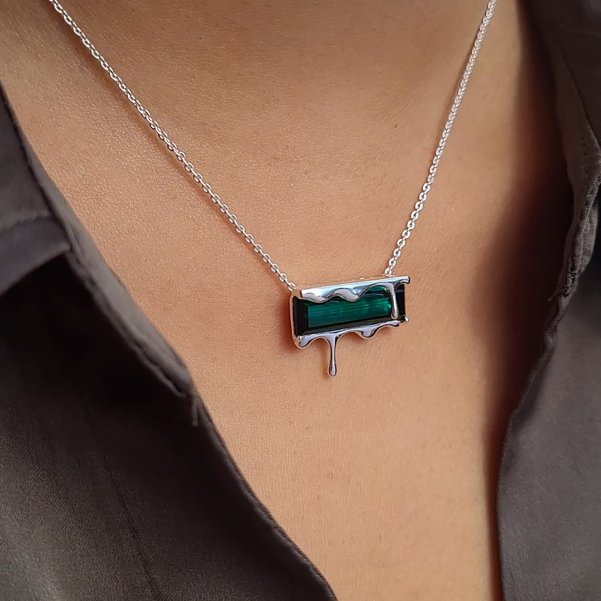 This Dripping Gemstone Sterling Silver Pendant Necklace by Marie June Jewelry is a minimalist jewel that captures the frozen beauty of molten silver in motion. Its sliding pendant moves freely along the chain, adding a sense of flow and versatility. Offered in rich gemstone shades—vivid Paraiba blue zircon, fiery garnet quartz, smoky quartz, and emerald quartz—the piece invites wearers to express individuality through color and symbolism. Sleek, timeless, and versatile, it is a refined addition to any modern jewelry collection.