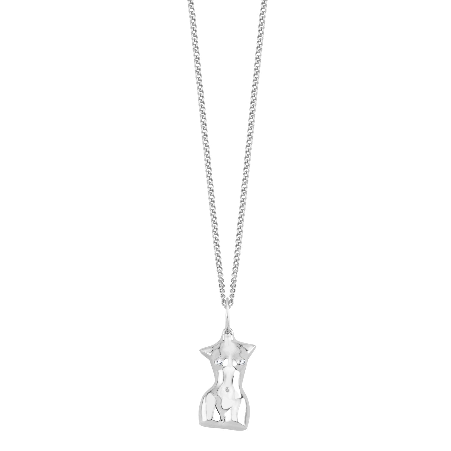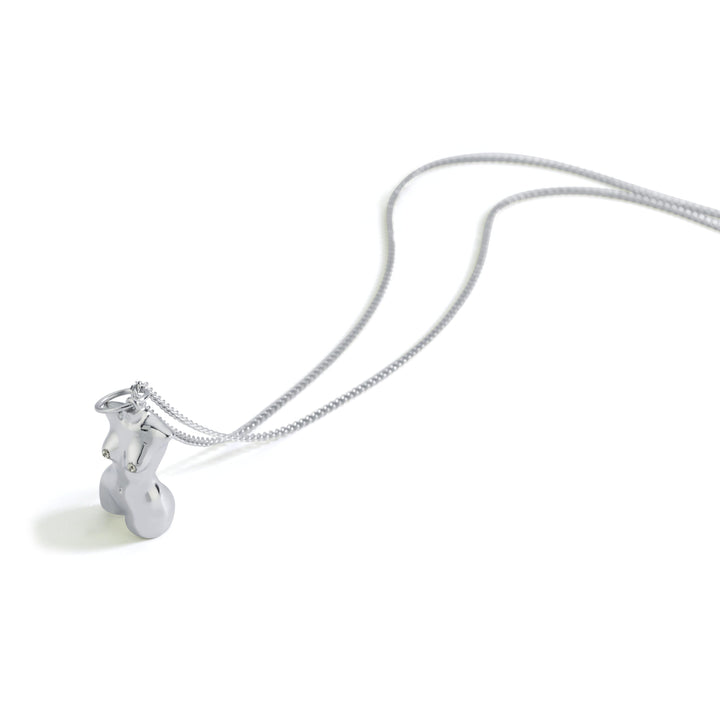 This My Girl Pendant Necklace by Mishka in silver is a sculptural celebration of the divine feminine. Handcrafted with fluid contours, it captures the elegance and strength of the female form, transforming the body into art. Subtle zirconia stones add a whisper of brilliance, while its bold, unapologetic design makes it a wearable tribute to sensuality and self-love.