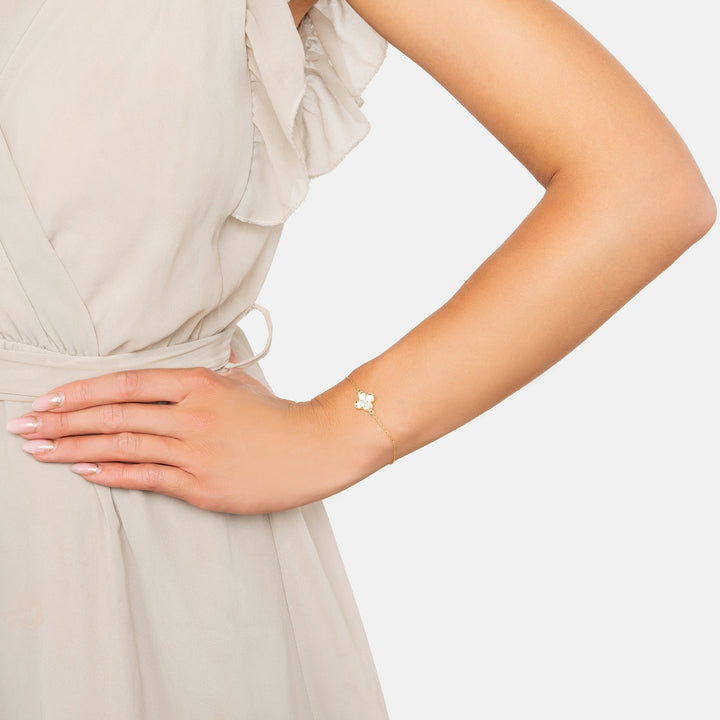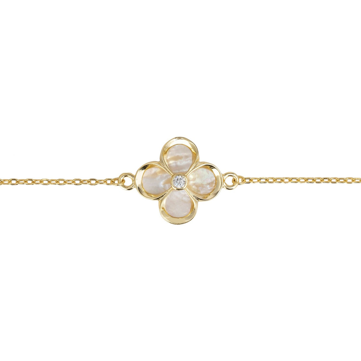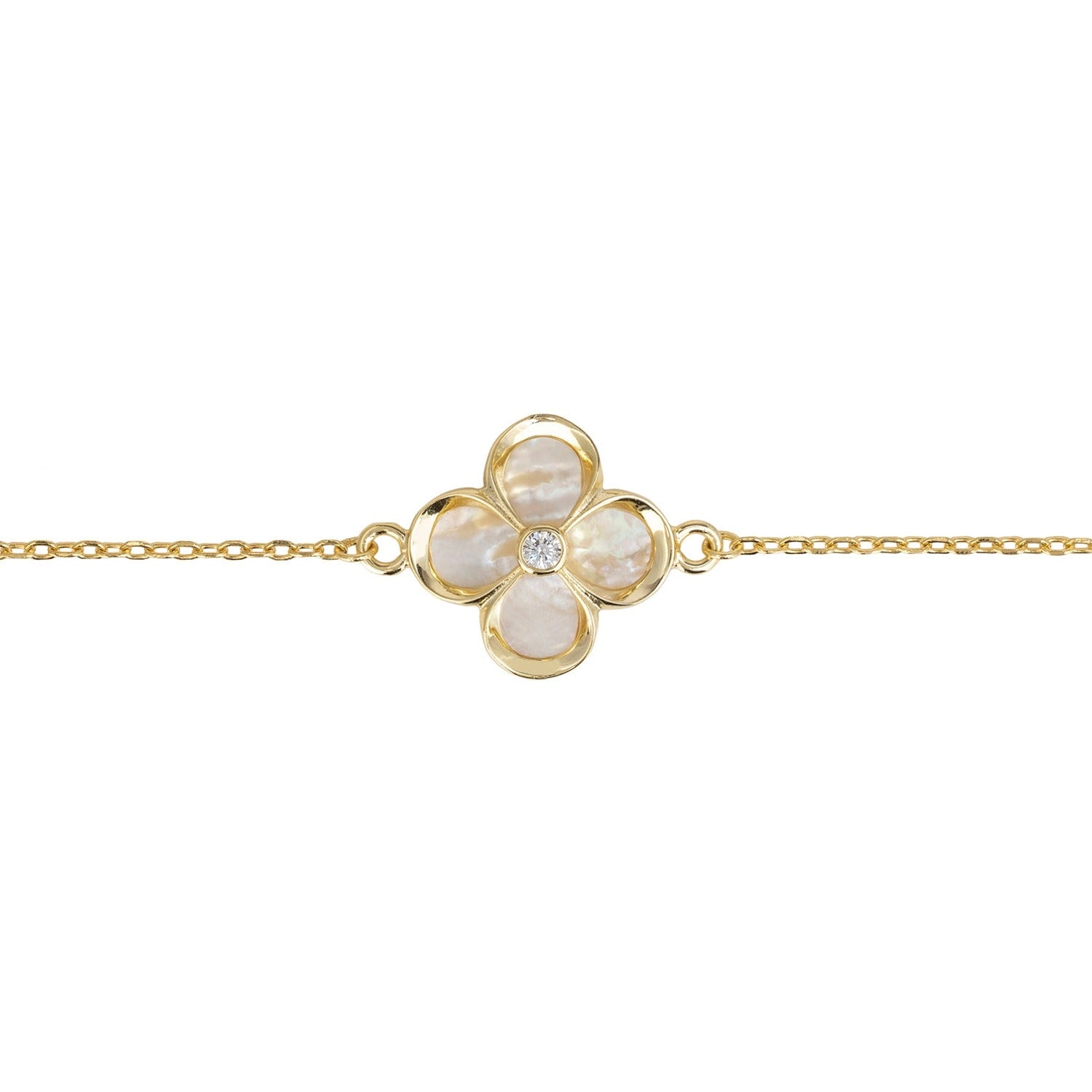 Flower Clover Bracelet Mother Of Pearl Gold