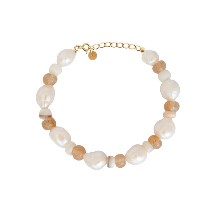Capri Citrine & Pearl Gemstone Beaded Gold Bracelet