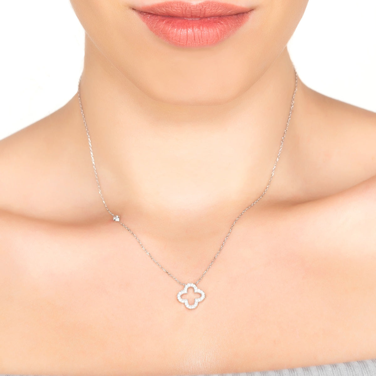 This Byzantine Clover Necklace by Latelita is a beautiful and meaningful piece for those who adore talismans and good luck charms. The open clover pendant, a classic symbol of good fortune, is handcrafted from sterling silver and set with multifaceted white zircons that shimmer beautifully. This necklace can be worn alone as a stunning statement piece or layered with other necklaces to create a unique, personalized look. It's a versatile and elegant accessory that carries a message of luck and prosperity.