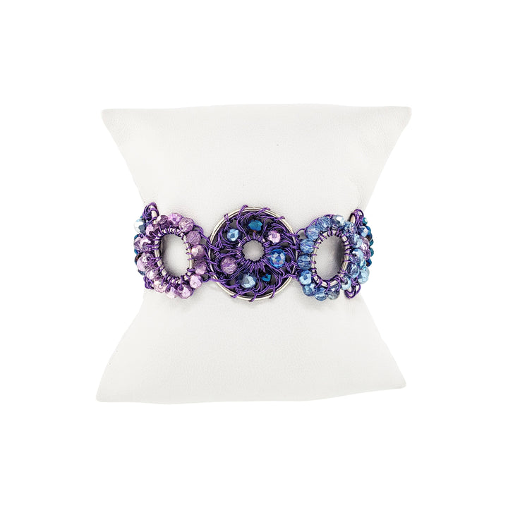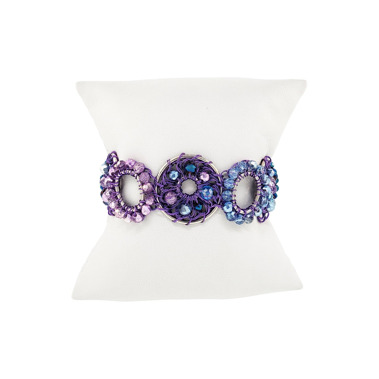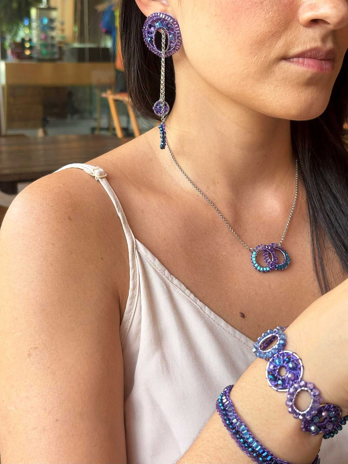 This Neon Purple Mix Moira Handmade Bracelet by Lavish by Tricia Milaneze is a vibrant statement of colour and texture. Handwoven by Brazilian artisans, it blends shimmering enameled wire with sparkling crystals and beads in a striking purple palette. Lightweight, hypoallergenic, and endlessly stylish, it’s a joyful piece that elevates any look.