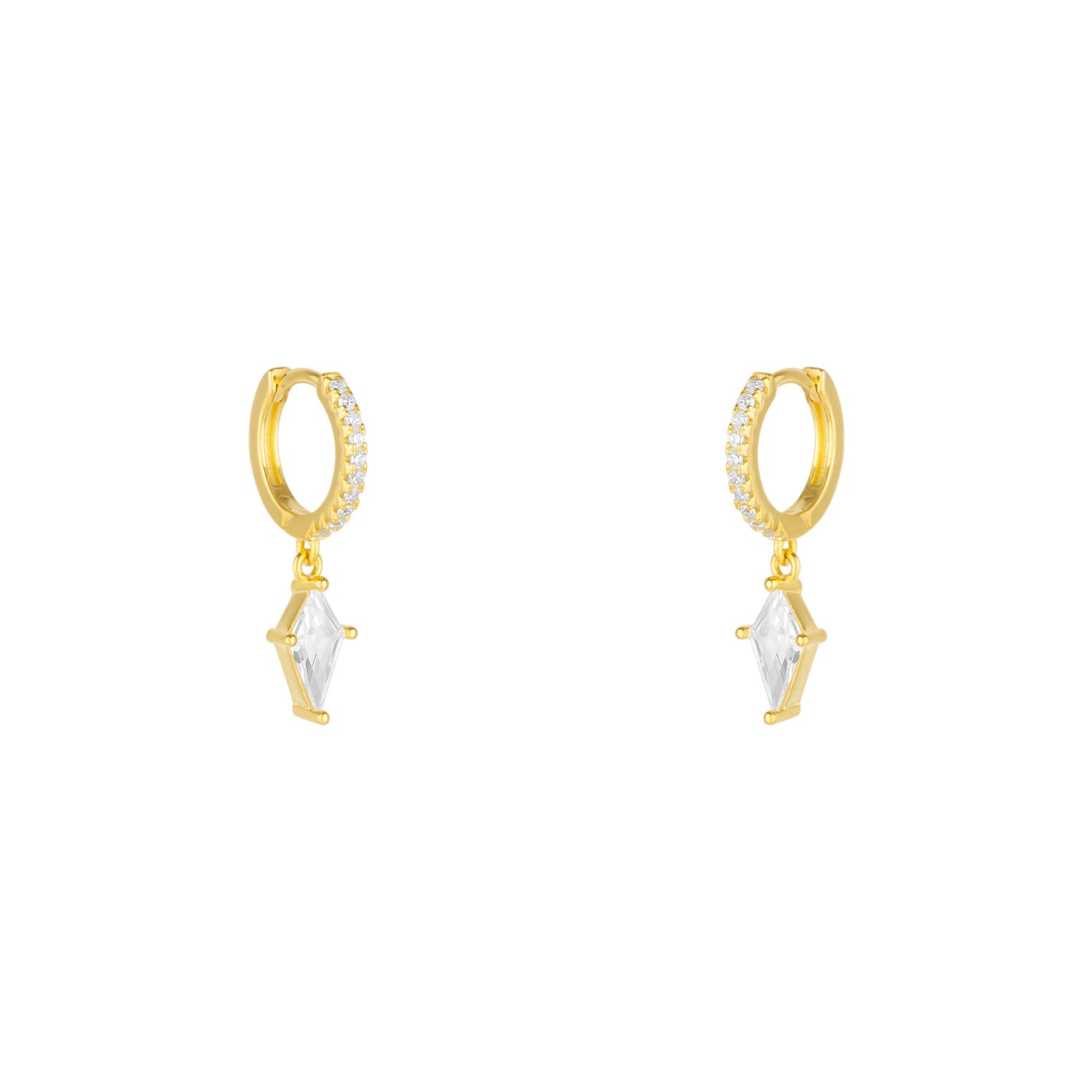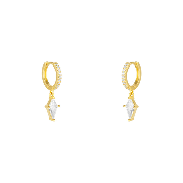 Fashioned from 925 recycled sterling silver with a gold-tone finish, these hoops feature a dangling triangle spike paved with cubic zirconia stones. They have a secure hinged-back lock closure.