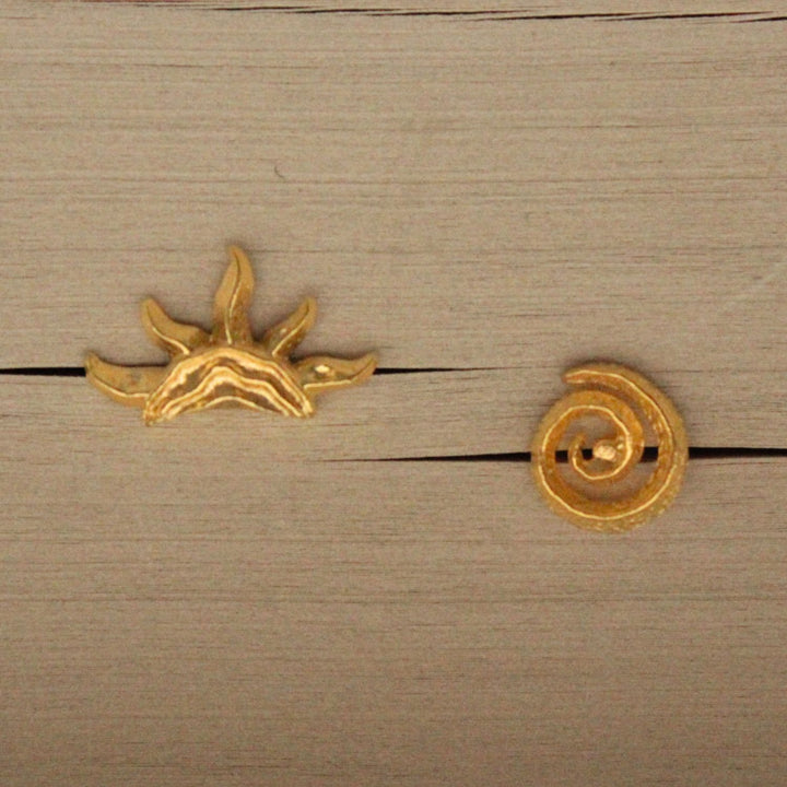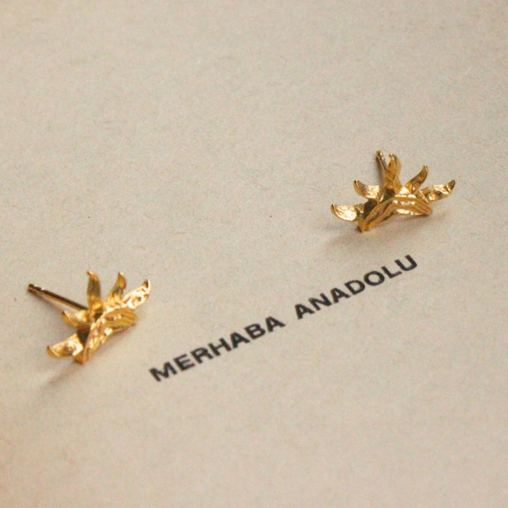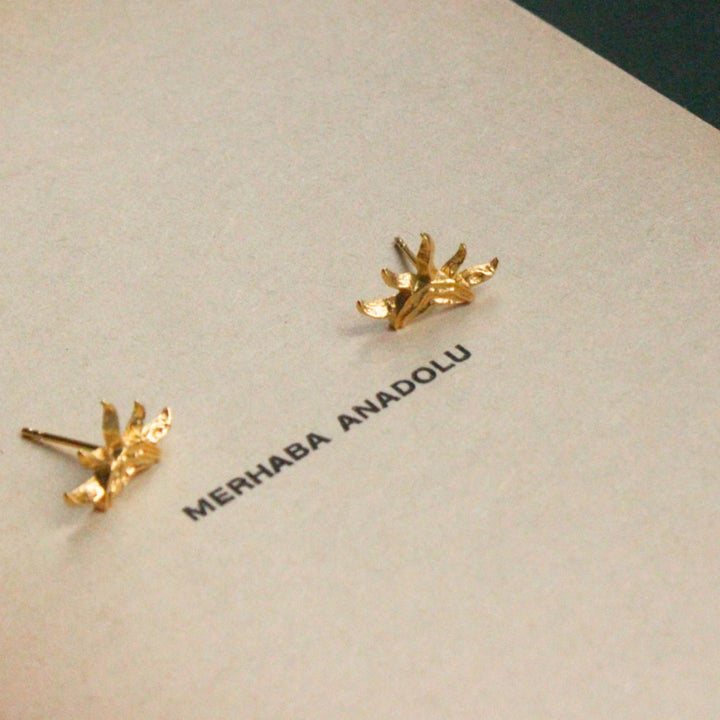 These Anatolia Gold Stud Earrings by Assuwa are perfect for stacking and daily wear. "Anatolia" is an ancient Greek word for "sunrise," and these earrings embody new beginnings. They are handcrafted using the ancient lost-wax casting and are made of 925 sterling silver with an 18kt high-quality gold micron plating. The earrings are a meaningful gift for astrology lovers, and for various life milestones.