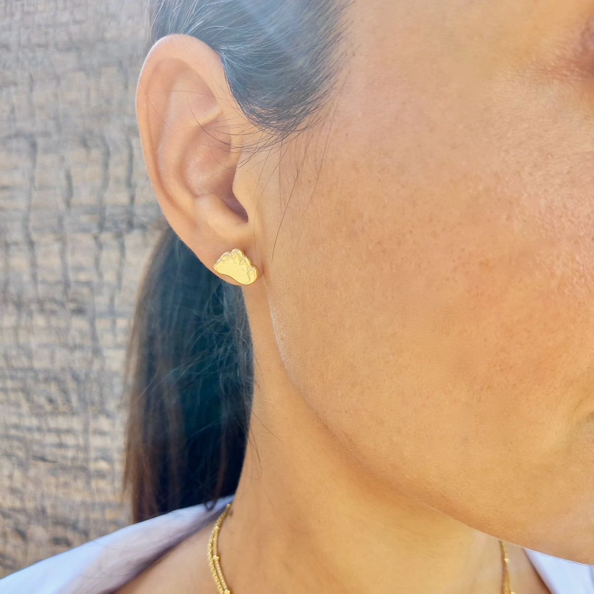 These Monsoon Cloud Stud Earrings - Gold by Rize are a cute and meaningful accessory. Inspired by a painting in India, these studs are a symbol of renewal and revival. They are made of 22k Gold vermeil on a recycled sterling silver base and have a brushed finish. Handcrafted by Fairtrade artisans, these fluffy cloud studs are a perfect way to add a touch of whimsy and symbolism to your look.