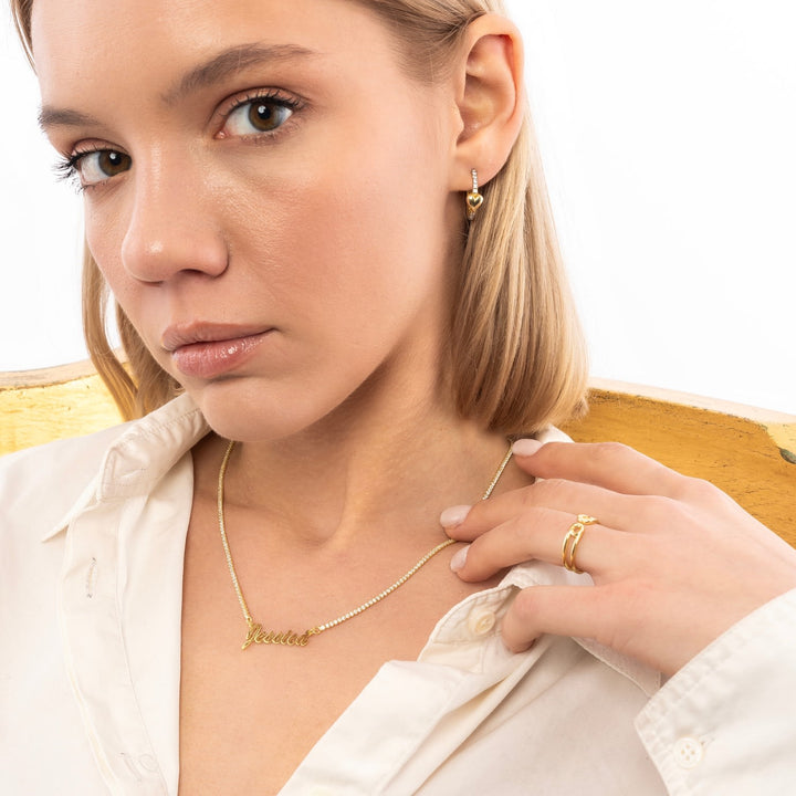 Hoop Heart Diamond Style Pave Sterling Silver Earring - Gold