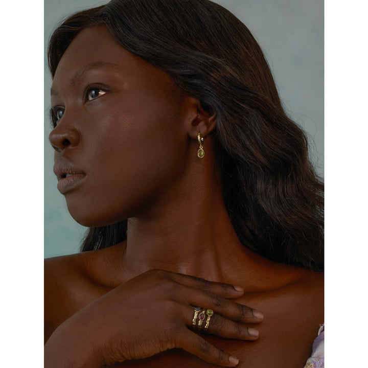 The Cosmo Gold-Plated Rhodolite Ring by Vintouch Italy is inspired by celestial bodies. This 18-karat gold-plated ring is handmade in Italy and features a vibrant rhodolite garnet stone. Cast from 18 karat gold over sterling silver, it is a beautiful and meaningful piece. A palladium plate is applied before the gold-plating process to protect it from natural oxidation.
