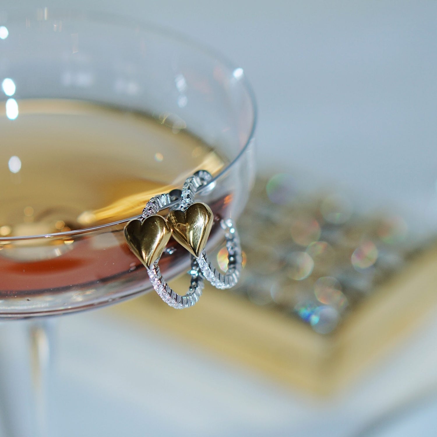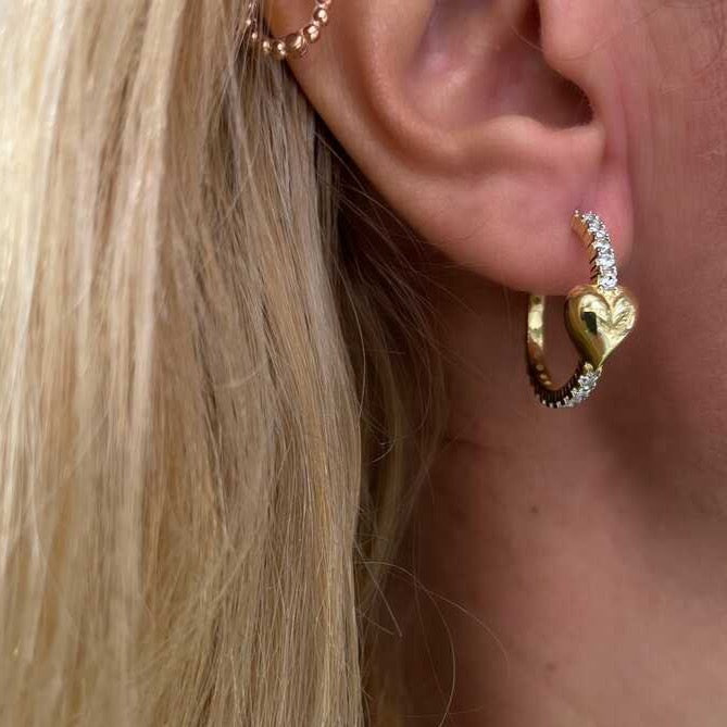 Hoop Heart Diamond Style Pave Sterling Silver Earring - Gold & Silver