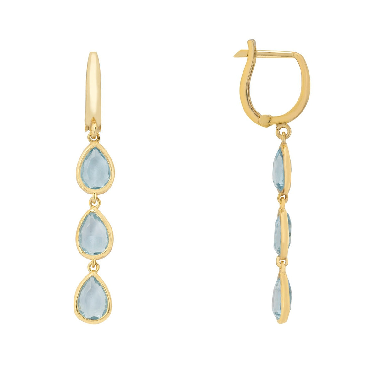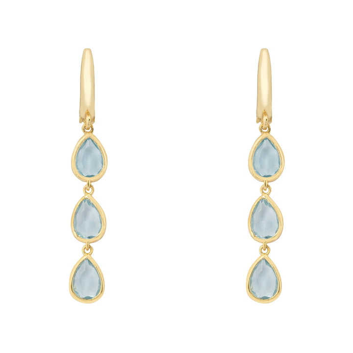 Sardinia Triple Teardrop Earrings Gold Blue Topaz